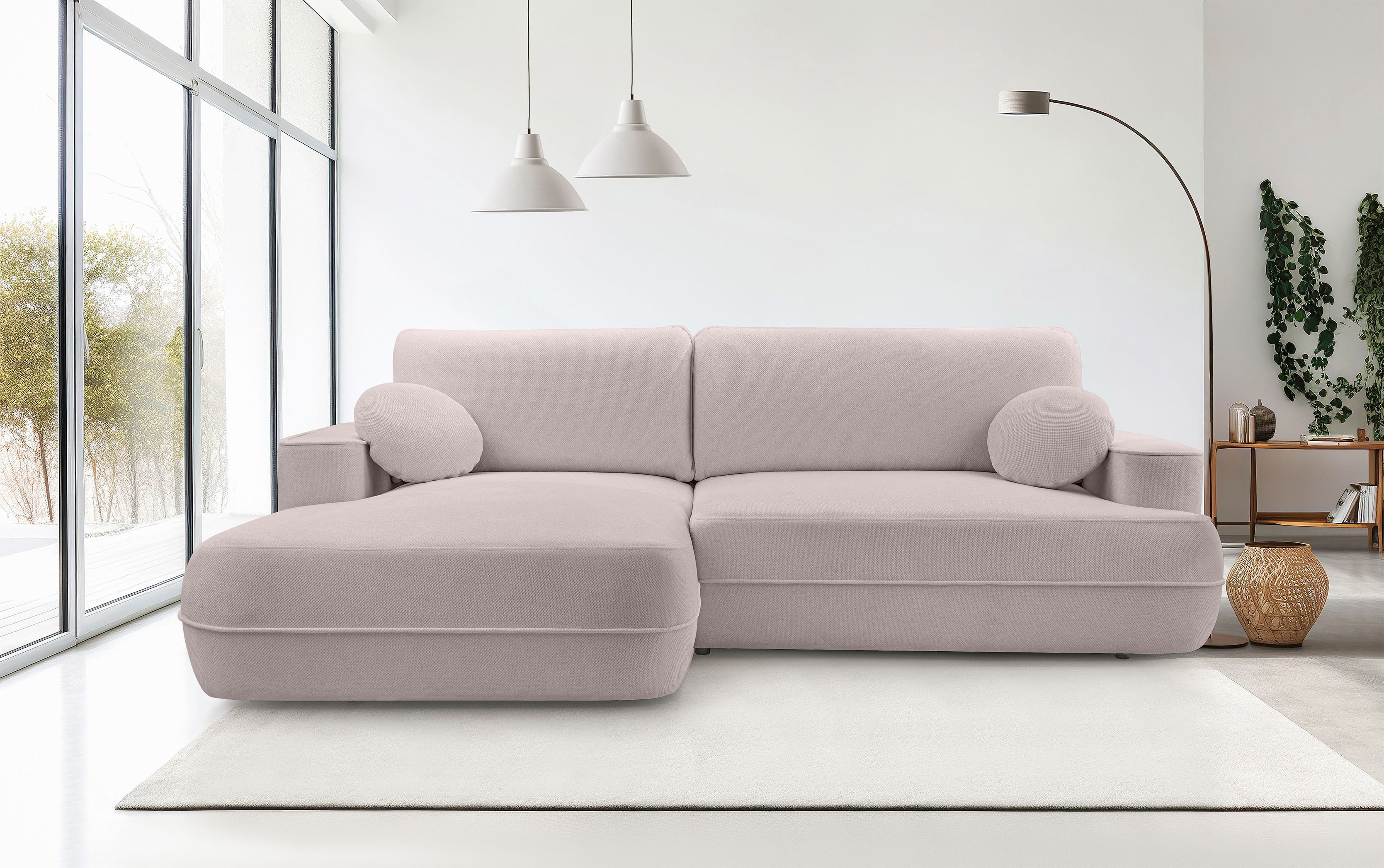 Narożnik FUEGO wolnostojący układ L strona Lewa z funkcją spania w tkaninie Bubble 06