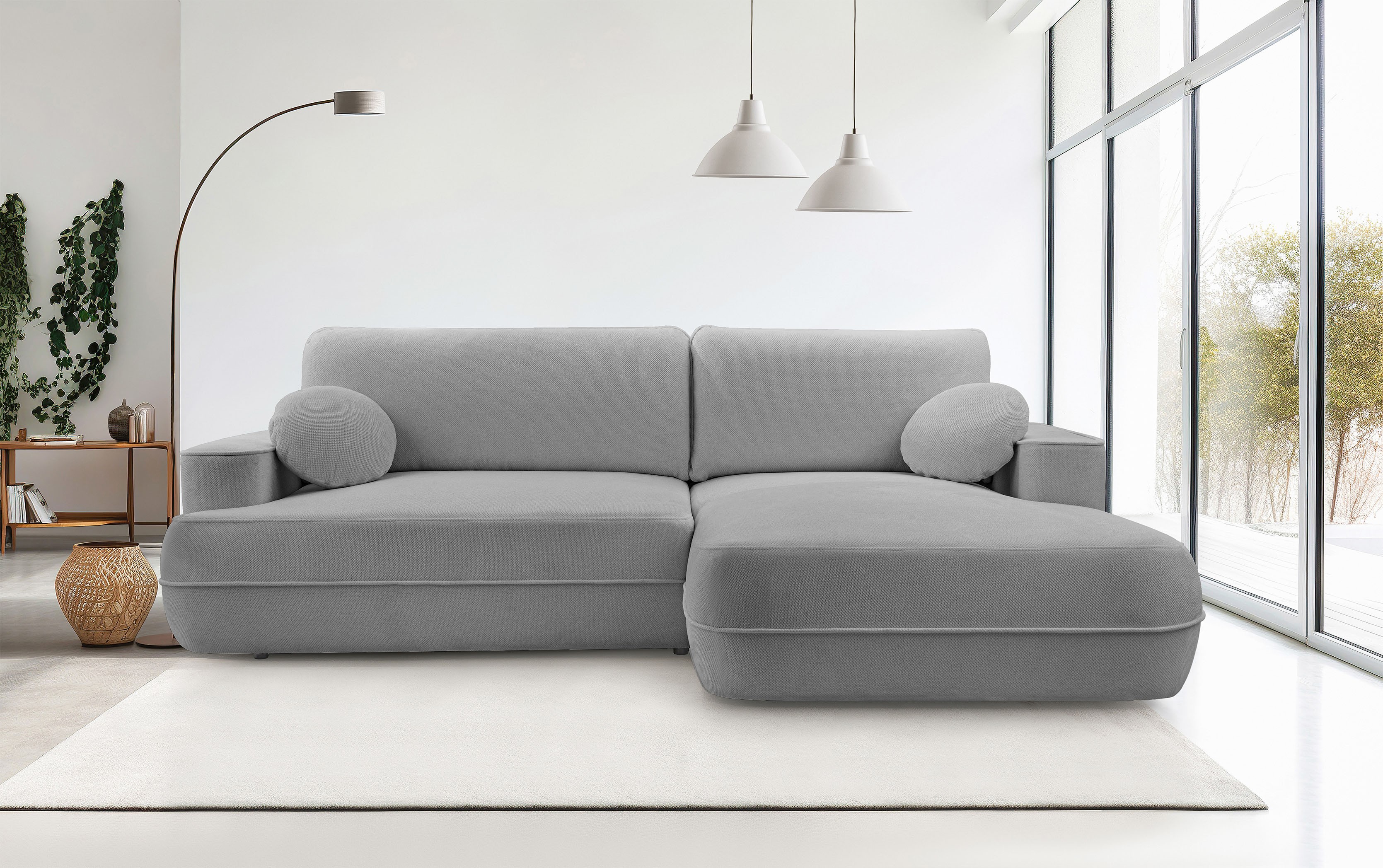 Narożnik FUEGO wolnostojący układ L strona Prawa z funkcją spania w tkaninie Bubble 06