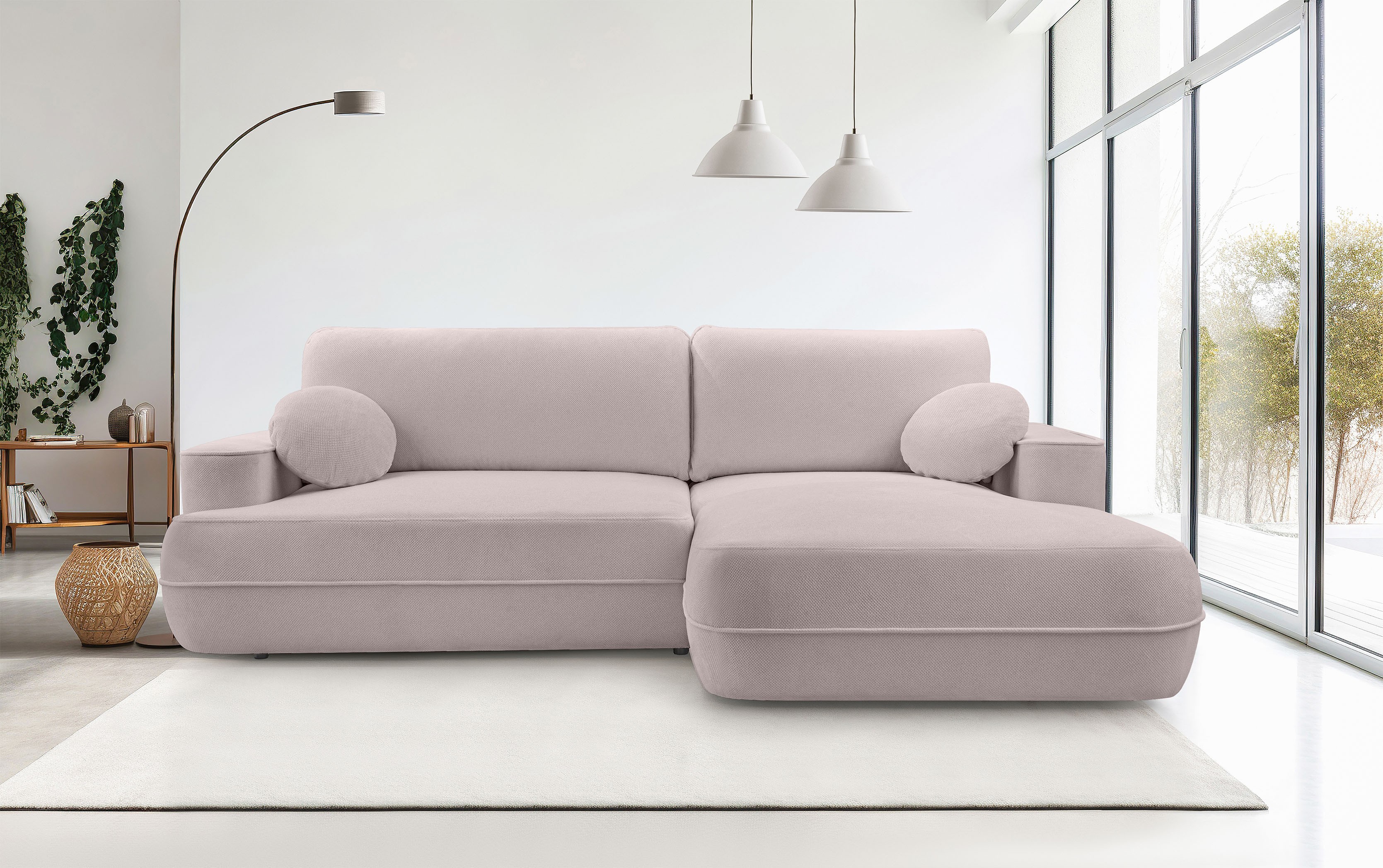 Narożnik FUEGO wolnostojący układ L strona Prawa z funkcją spania w tkaninie Bubble 08