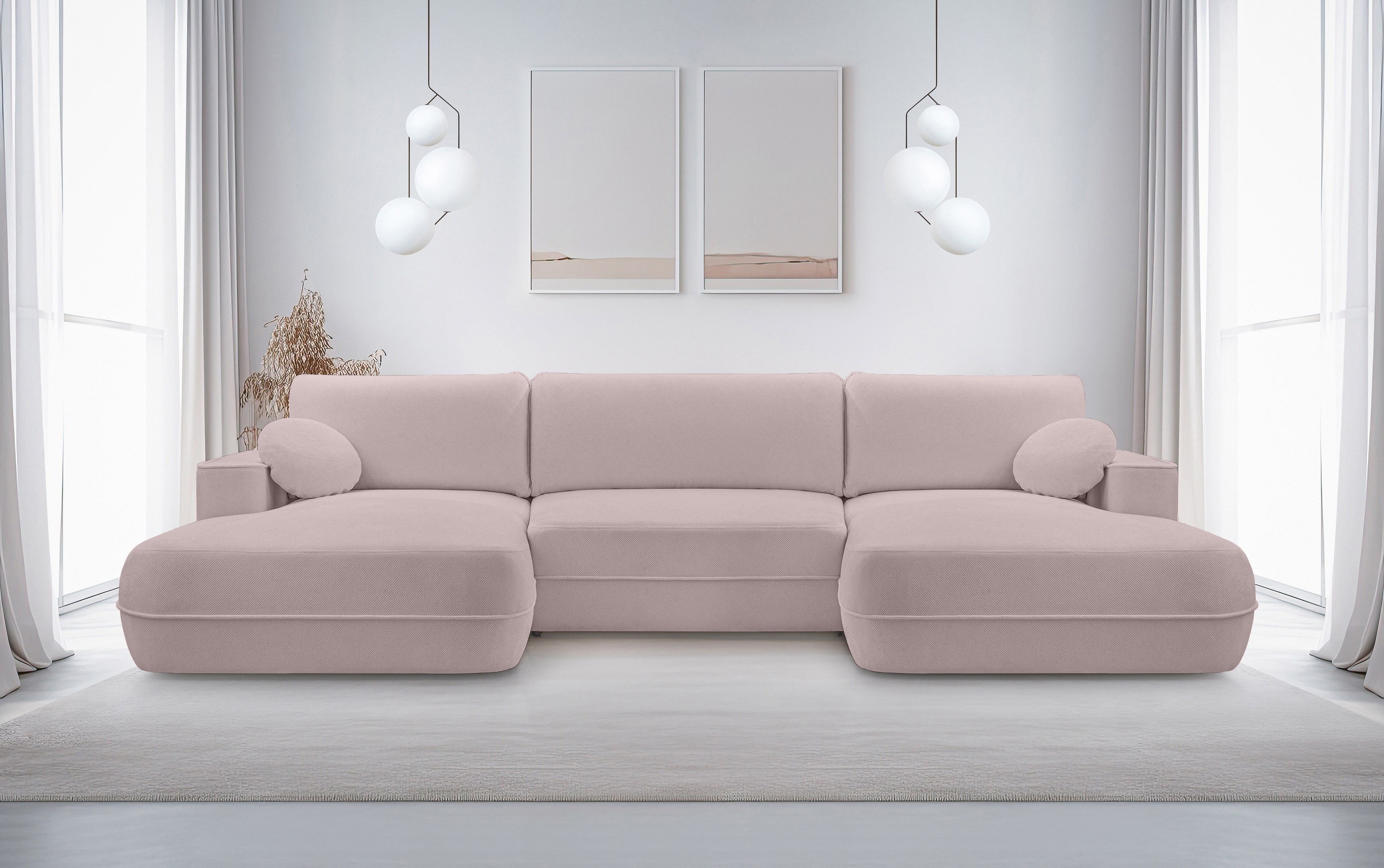Narożnik FUEGO XL wolnostojący układ U z funkcją spania w tkaninie Bubble 01 DomoHome