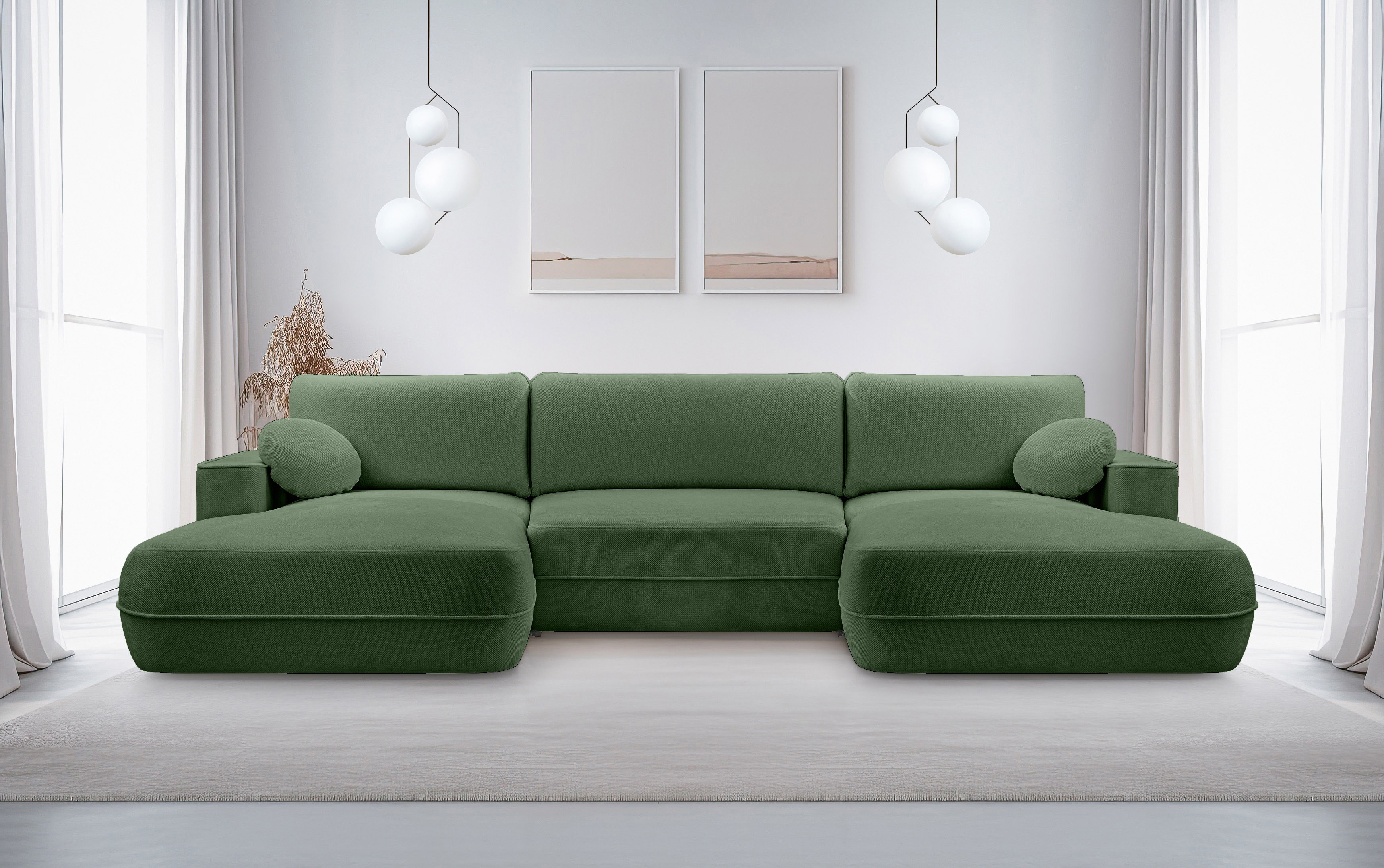Model w kształcie litery U zapewnia dużo miejsca do siedzenia i relaksu.