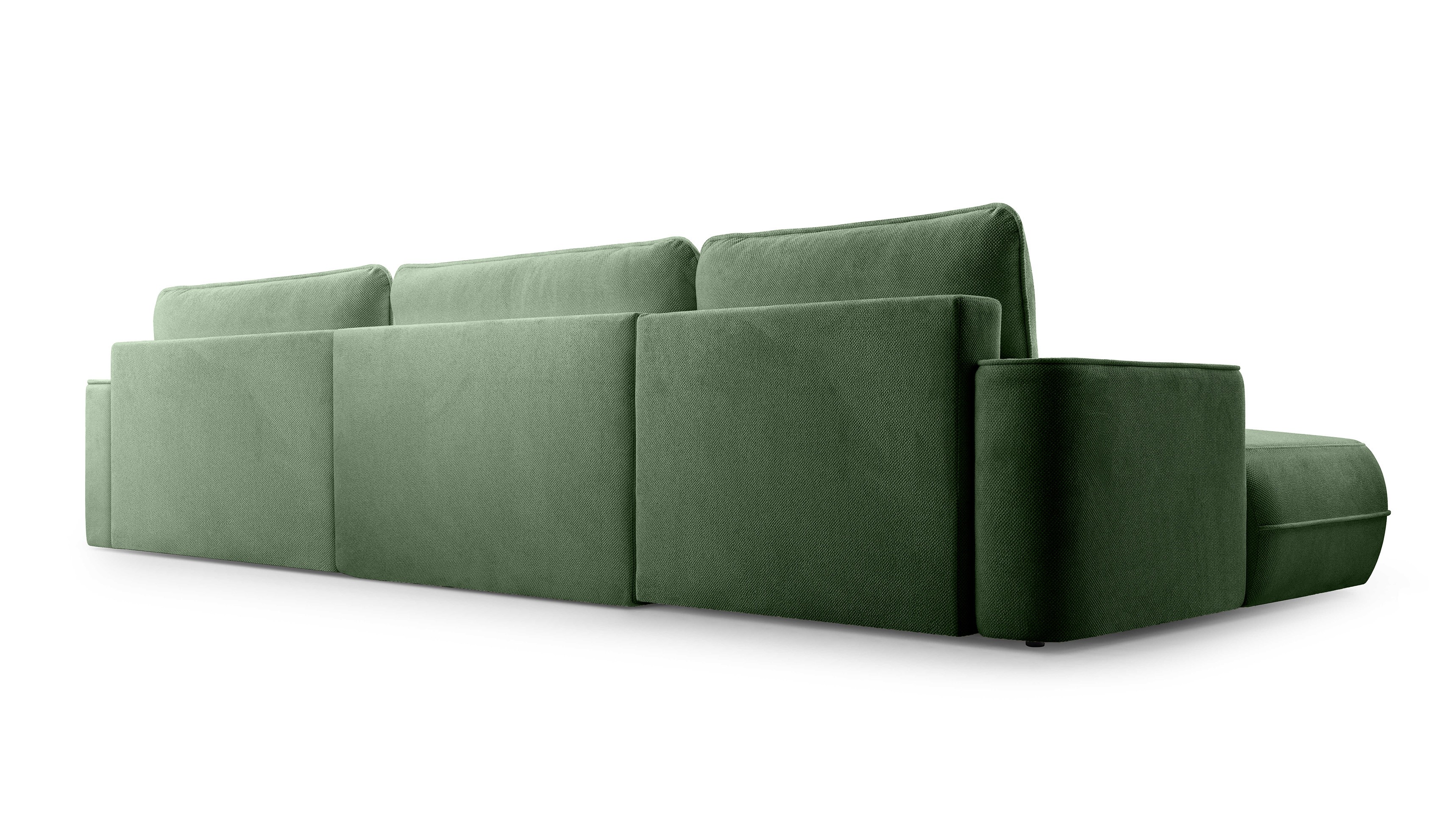Narożnik FUEGO U jest wolnostojący, a tył obity tkaniną, co pozwala ustawić go w dowolnym miejscu salonu.