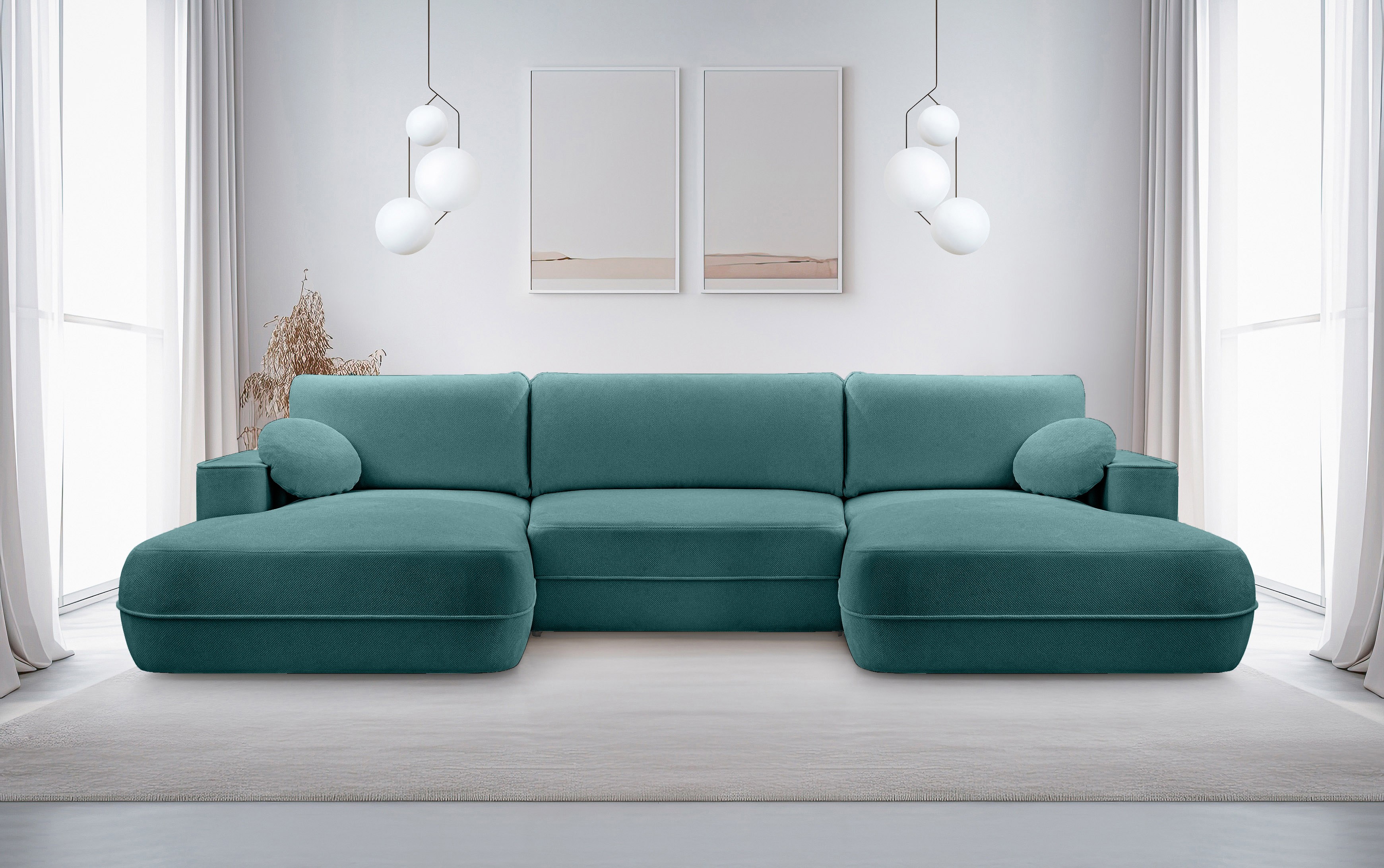 Narożnik FUEGO wolnostojący układ U z funkcją spania w tkaninie Bubble 14