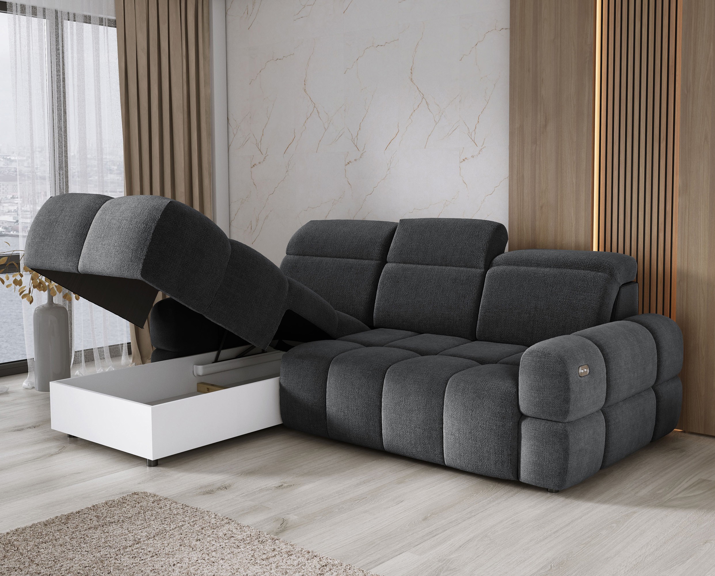 Niezwykle modny, nowoczesny wygląd i wyjątkowa funkcjonalność to główne atuty narożnika MATEO S.
