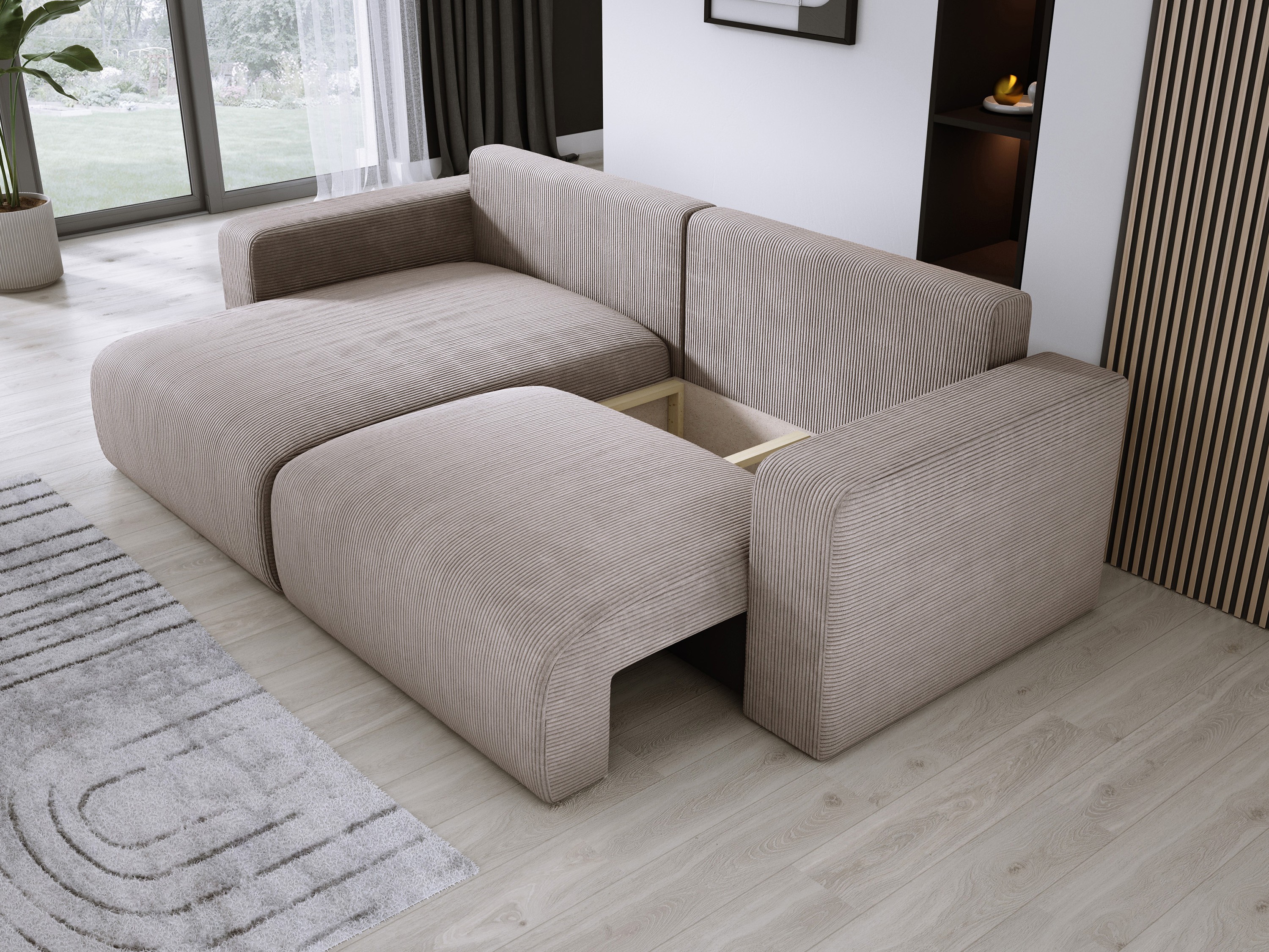 Dzięki kompaktowemu kształtowi litery L oraz możliwości uniwersalnego montażu otomany, narożnik z łatwością dopasuje się do każdego wnętrza – klasycznego, nowoczesnego czy skandynawskiego.
