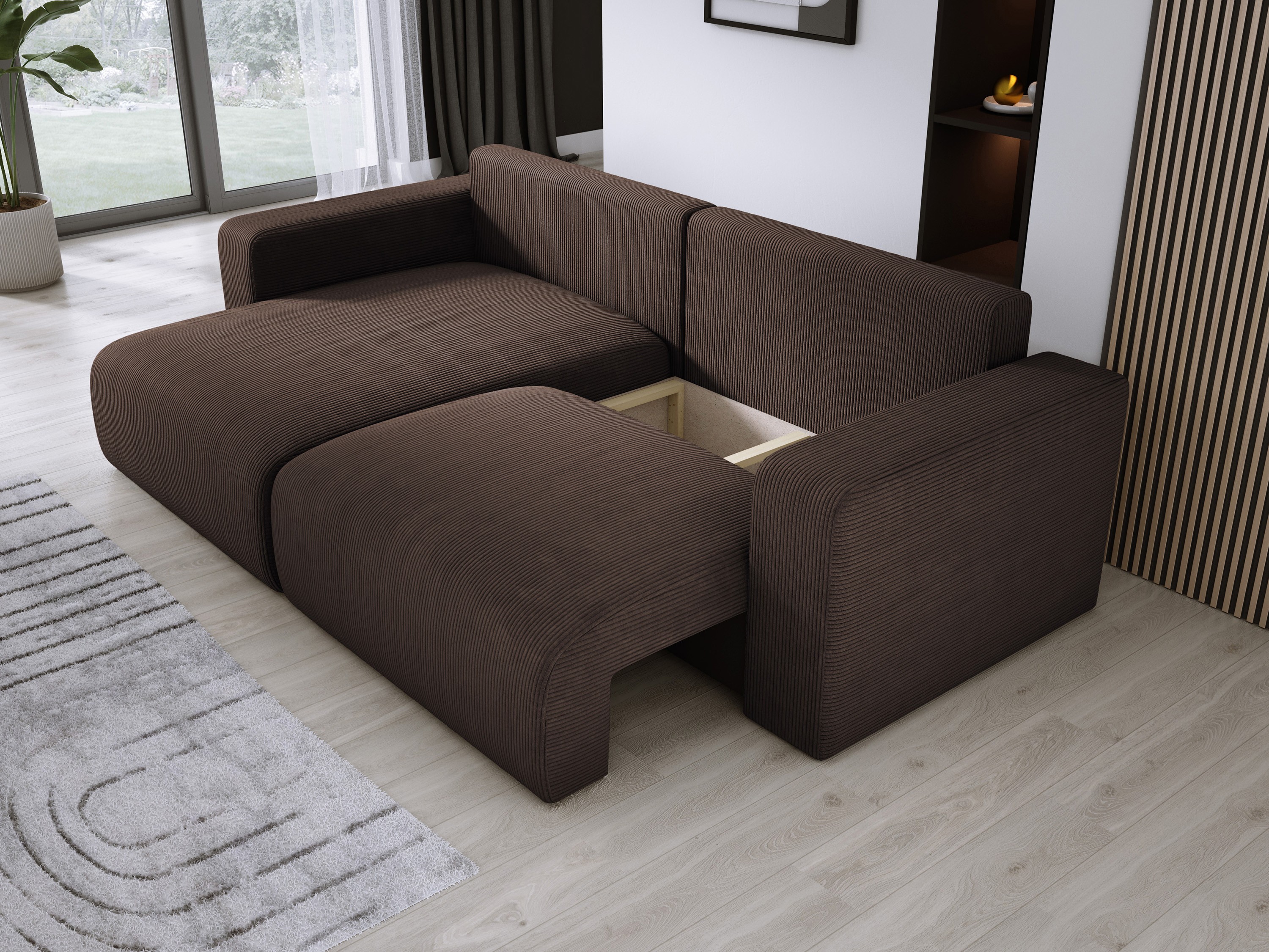 Dzięki kompaktowemu kształtowi litery L oraz możliwości uniwersalnego montażu otomany, narożnik z łatwością dopasuje się do każdego wnętrza – klasycznego, nowoczesnego czy skandynawskiego.