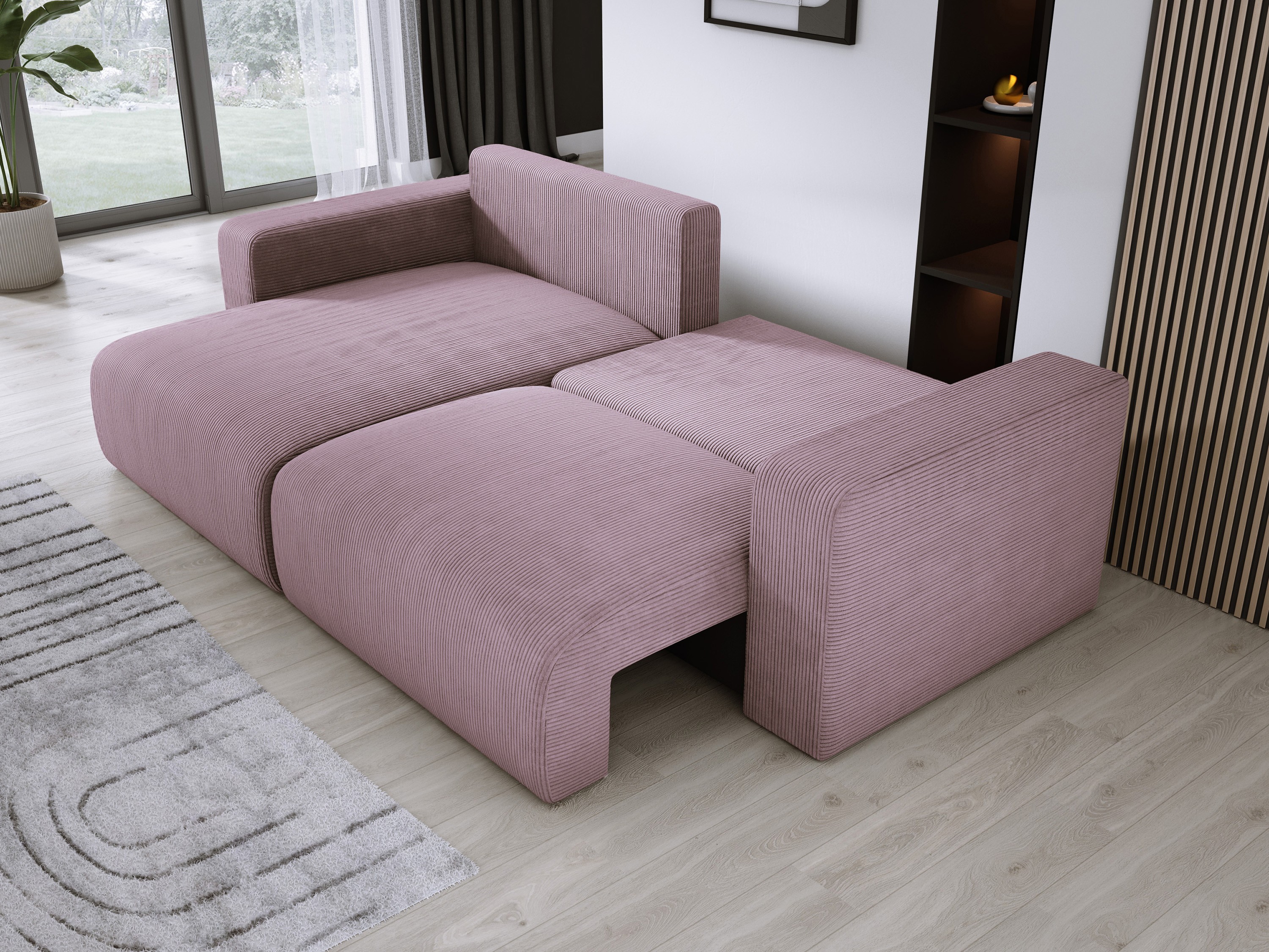 Miękkie poduchy oparciowe i wysokiej jakości obicie sztruksowe dodają mu przytulności i nowoczesnego charakteru.
