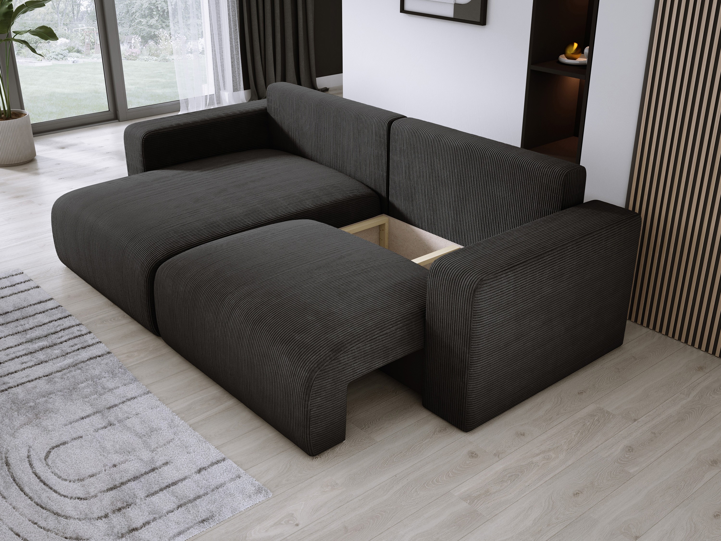 Dzięki kompaktowemu kształtowi litery L oraz możliwości uniwersalnego montażu otomany, narożnik z łatwością dopasuje się do każdego wnętrza – klasycznego, nowoczesnego czy skandynawskiego.