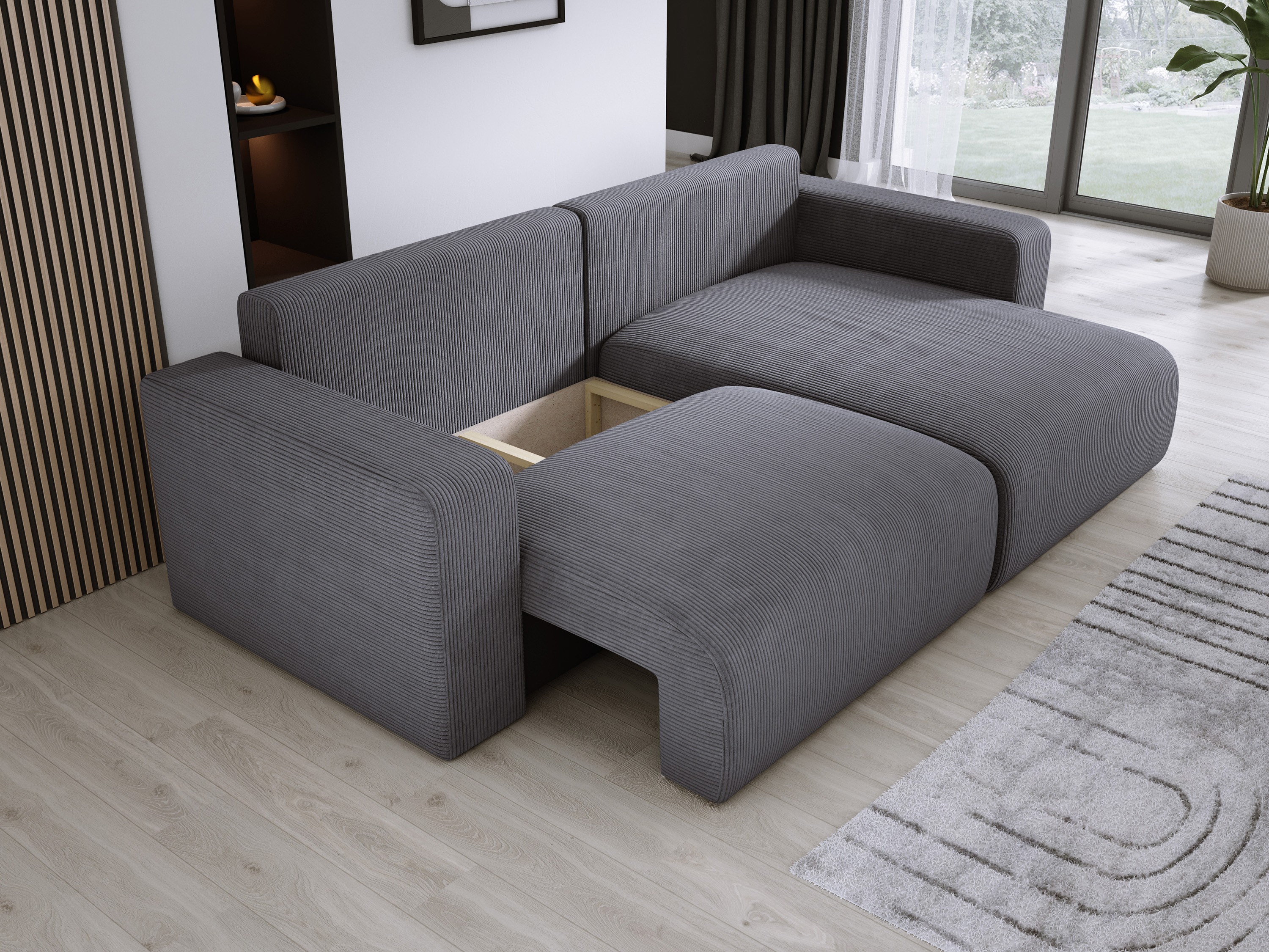 Dzięki kompaktowemu kształtowi litery L oraz możliwości uniwersalnego montażu otomany, narożnik z łatwością dopasuje się do każdego wnętrza – klasycznego, nowoczesnego czy skandynawskiego.