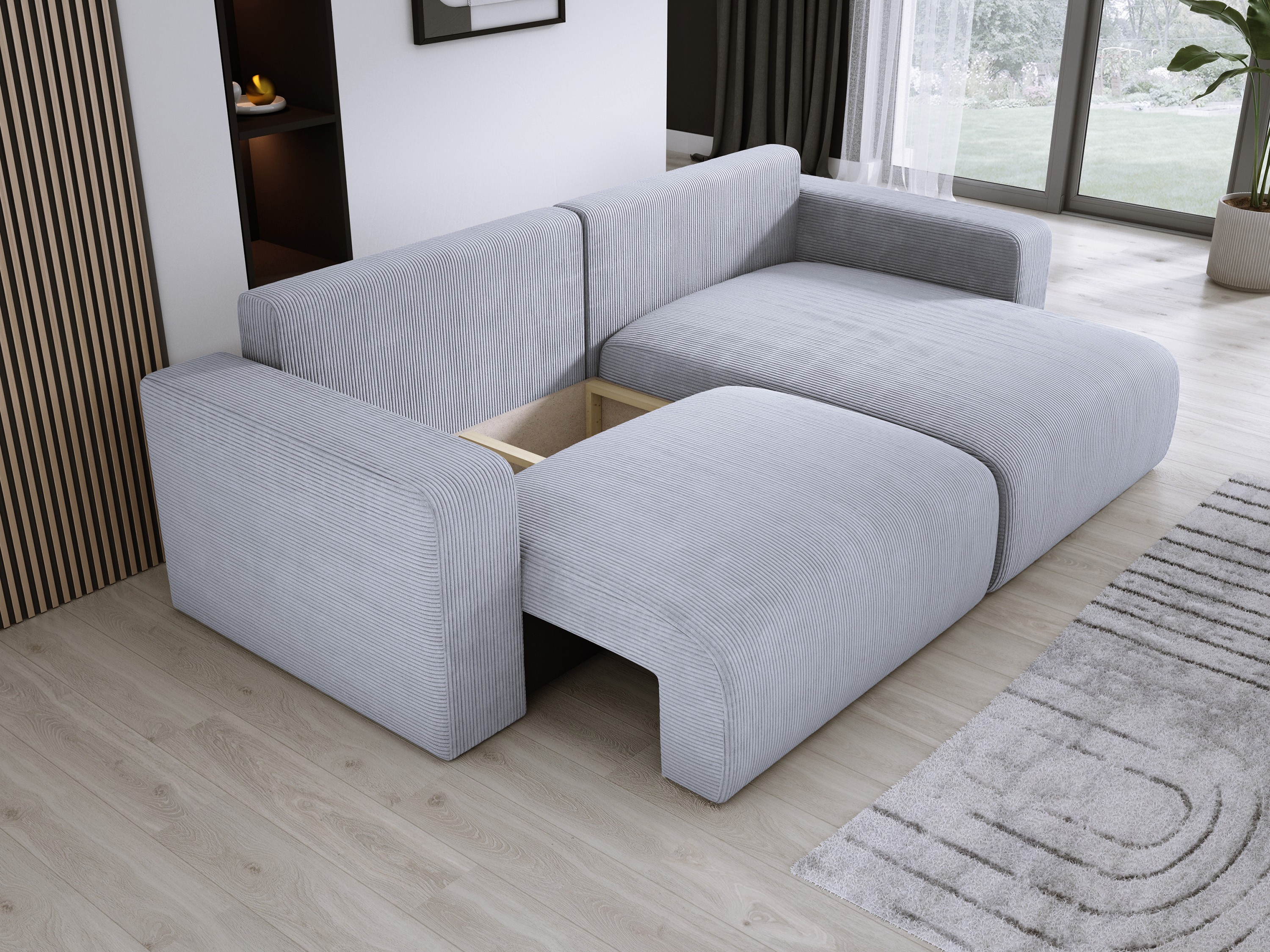 Dzięki kompaktowemu kształtowi litery L oraz możliwości uniwersalnego montażu otomany, narożnik z łatwością dopasuje się do każdego wnętrza – klasycznego, nowoczesnego czy skandynawskiego.
