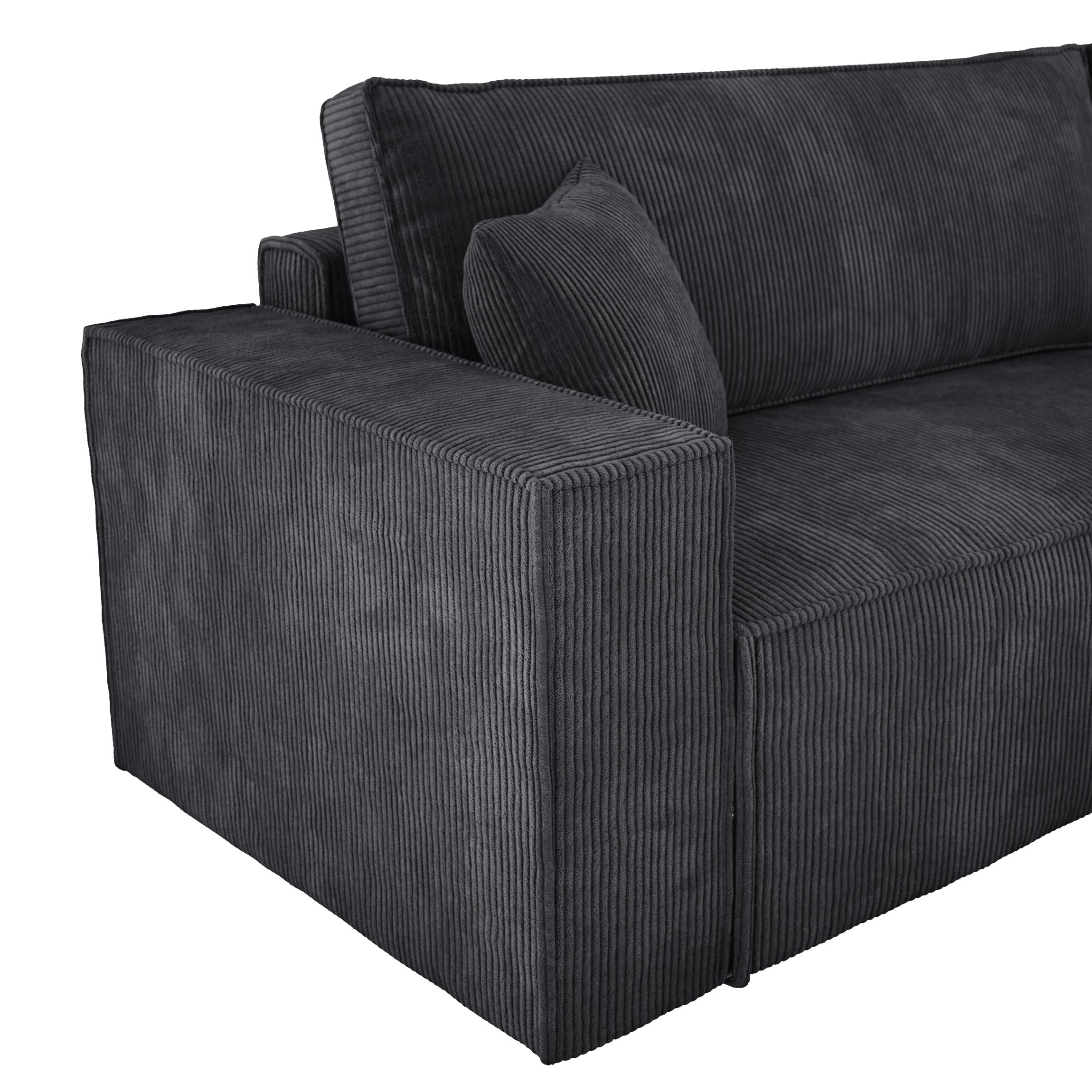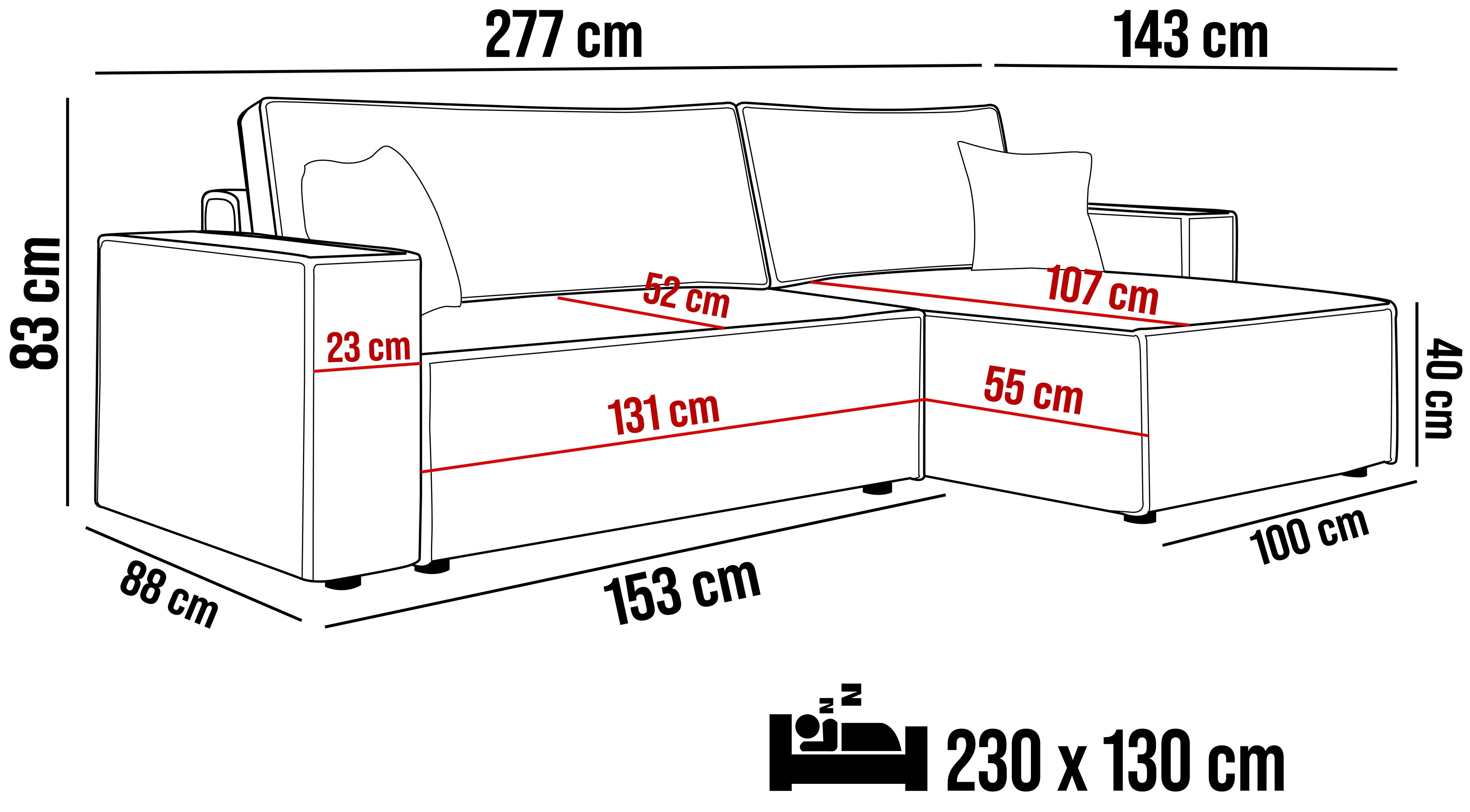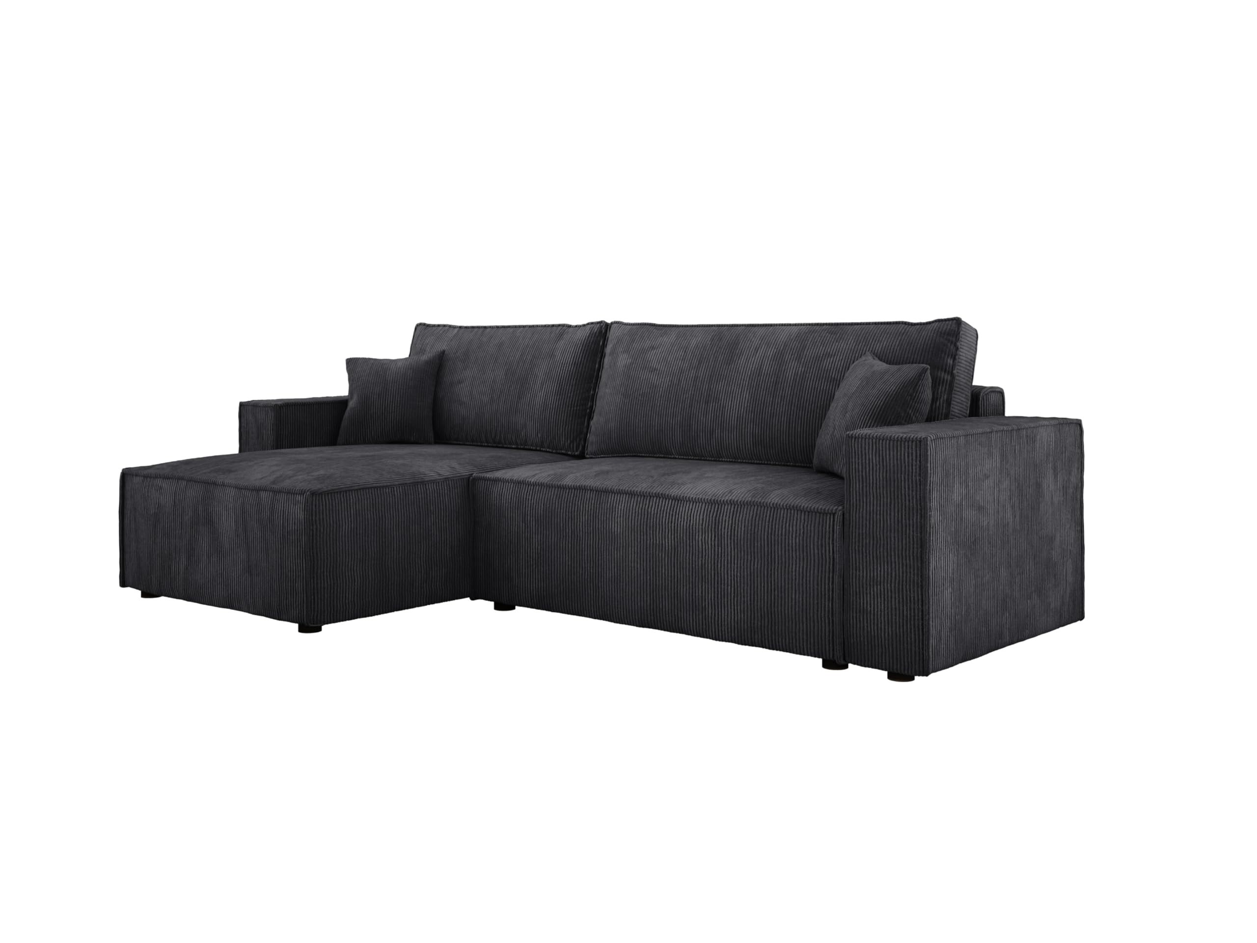 Przestronny pojemnik na pościel ułatwia przechowywanie, a miękka tkanina dodaje przytulności, czyniąc narożnik idealnym miejscem do relaksu.