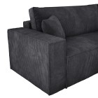 Wyposażony w sprężyny faliste i wysokoelastyczną piankę, jego solidna konstrukcja z drewna i płyty meblowej pokryta jest wytrzymałym sztruksem odpornym na ścieranie.
