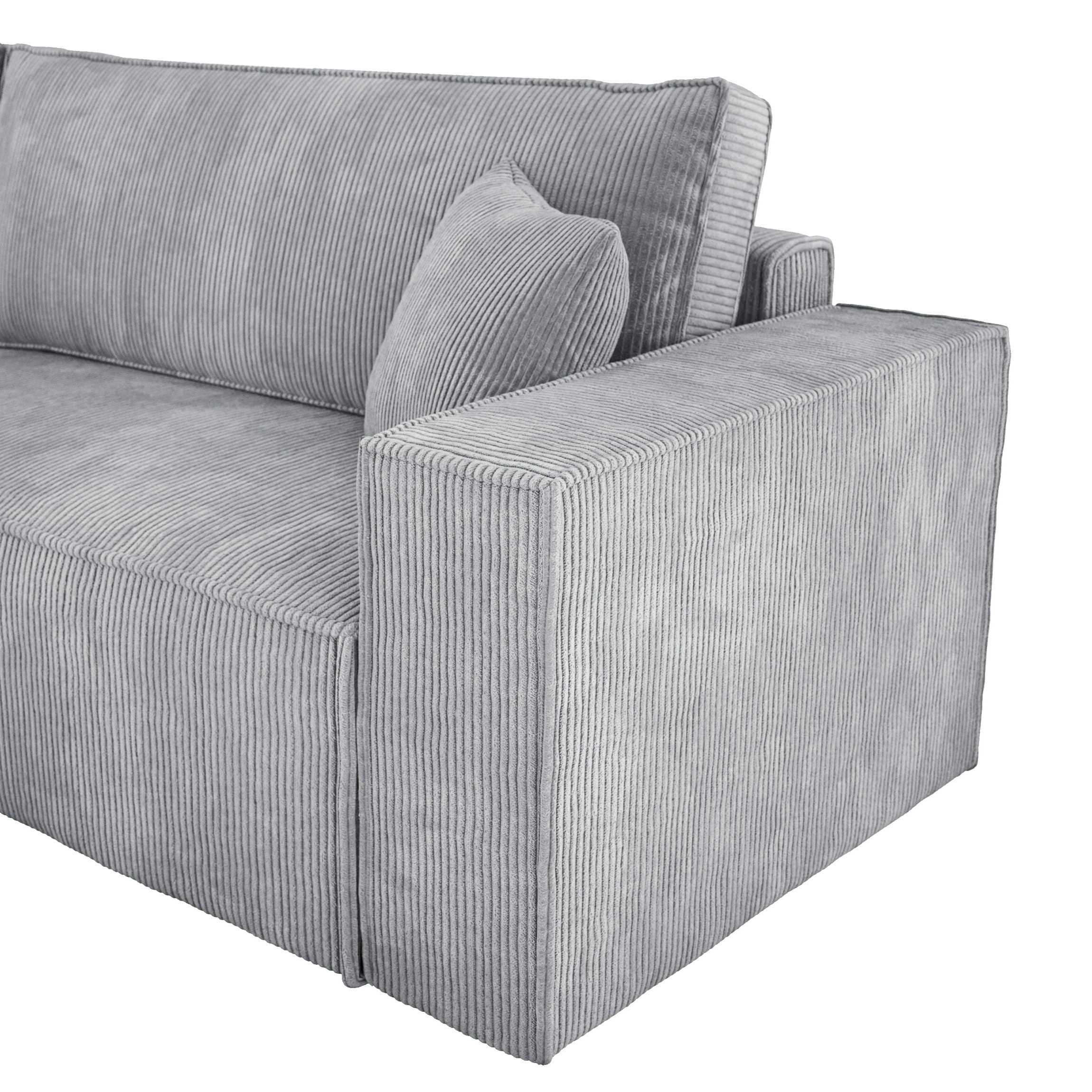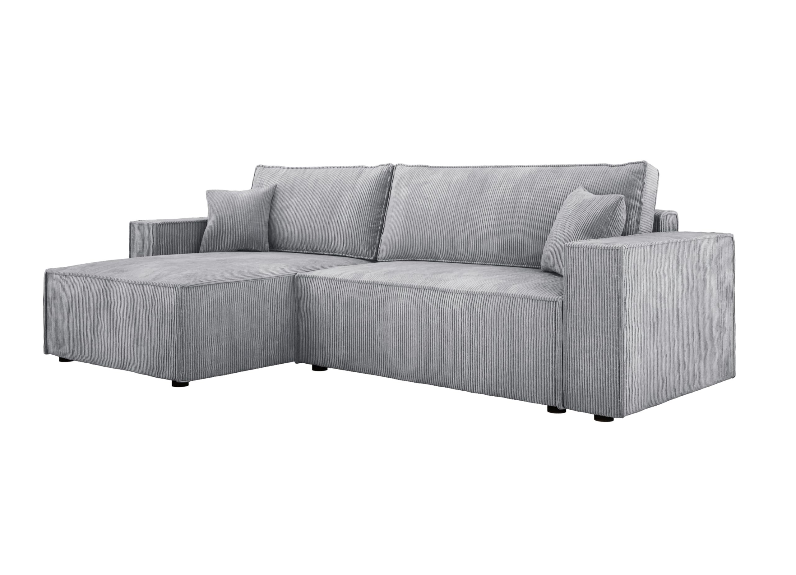 Przestronny pojemnik na pościel ułatwia przechowywanie, a miękka tkanina dodaje przytulności, czyniąc narożnik idealnym miejscem do relaksu.