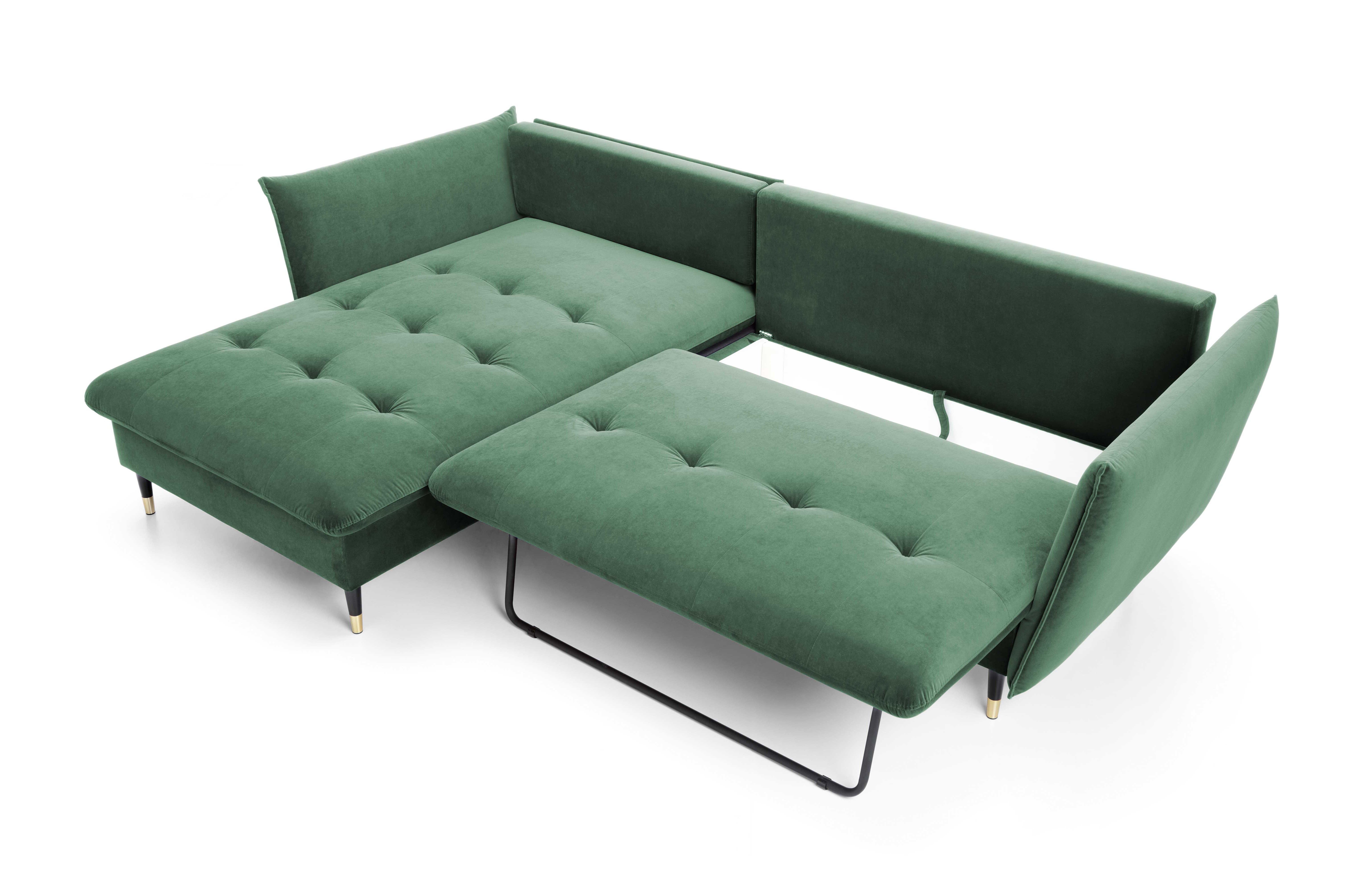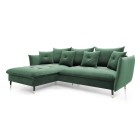 Narożnik GLAM Lewostronny z funkcją spania, zestaw z poduszkami wolnostojący tkanina RIVIERA 38 Zielony DOMO HOME