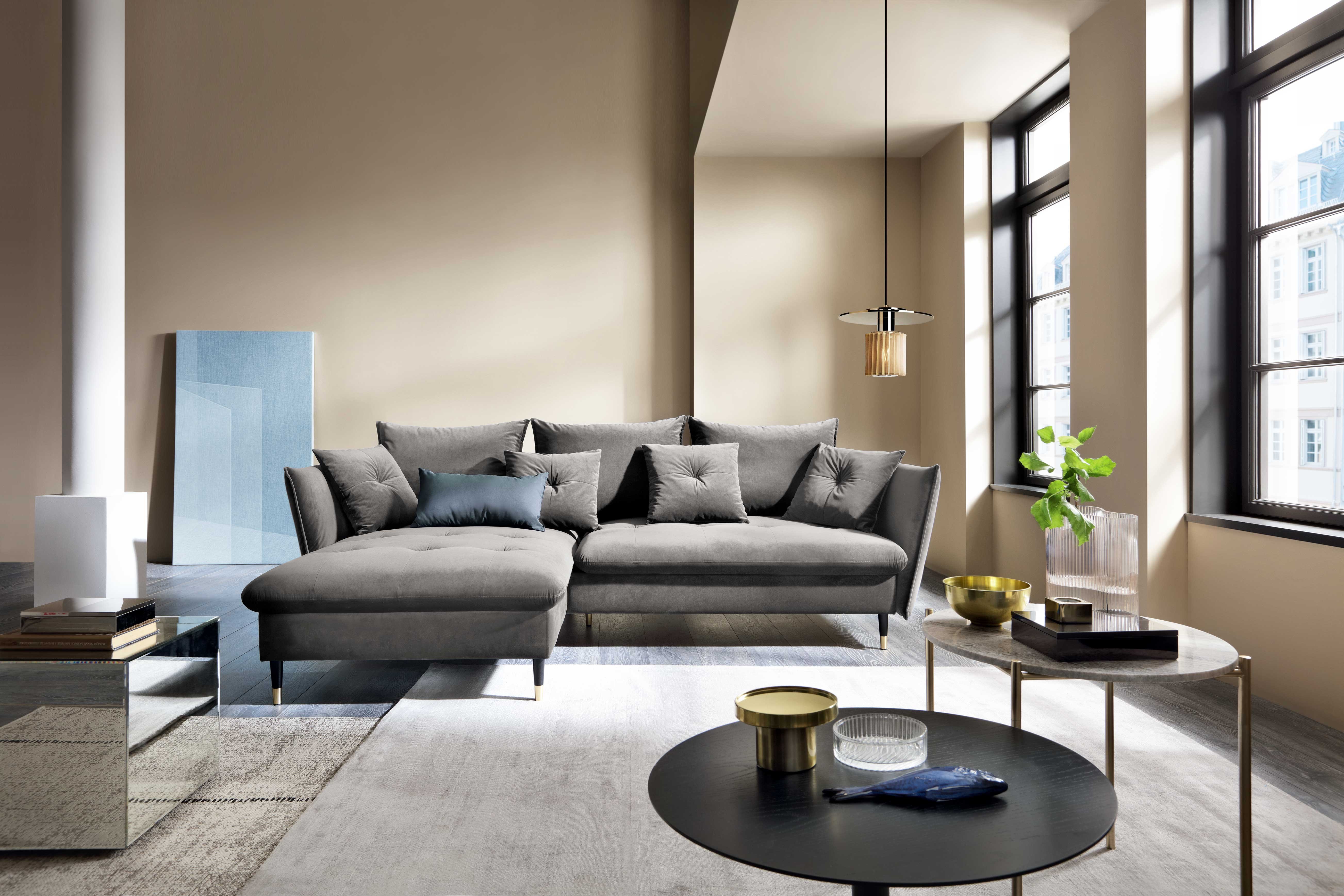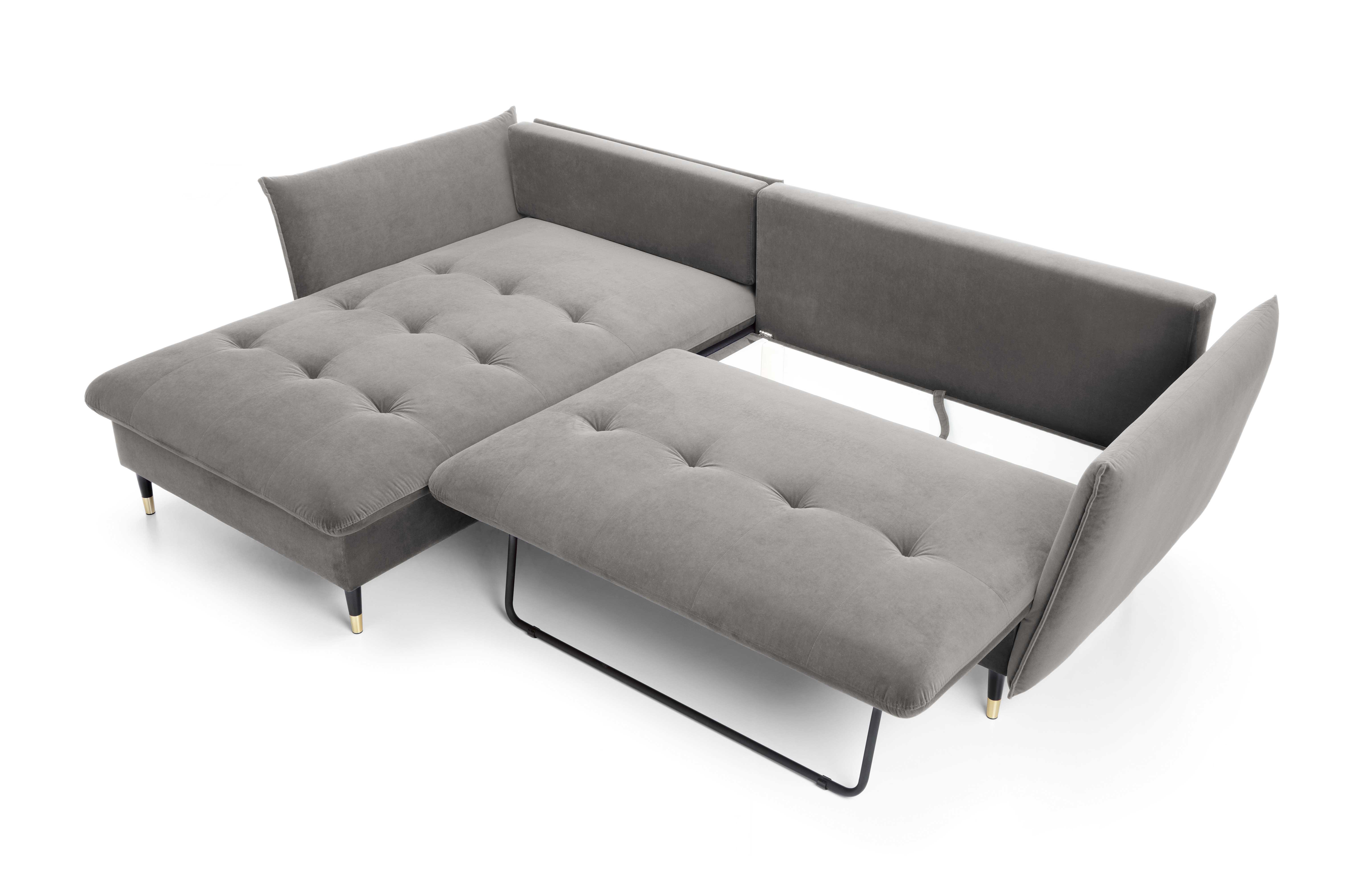 Narożnik GLAM Lewostronny z funkcją spania, zestaw z poduszkami wolnostojący tkanina RIVIERA 91 Szary DOMO HOME