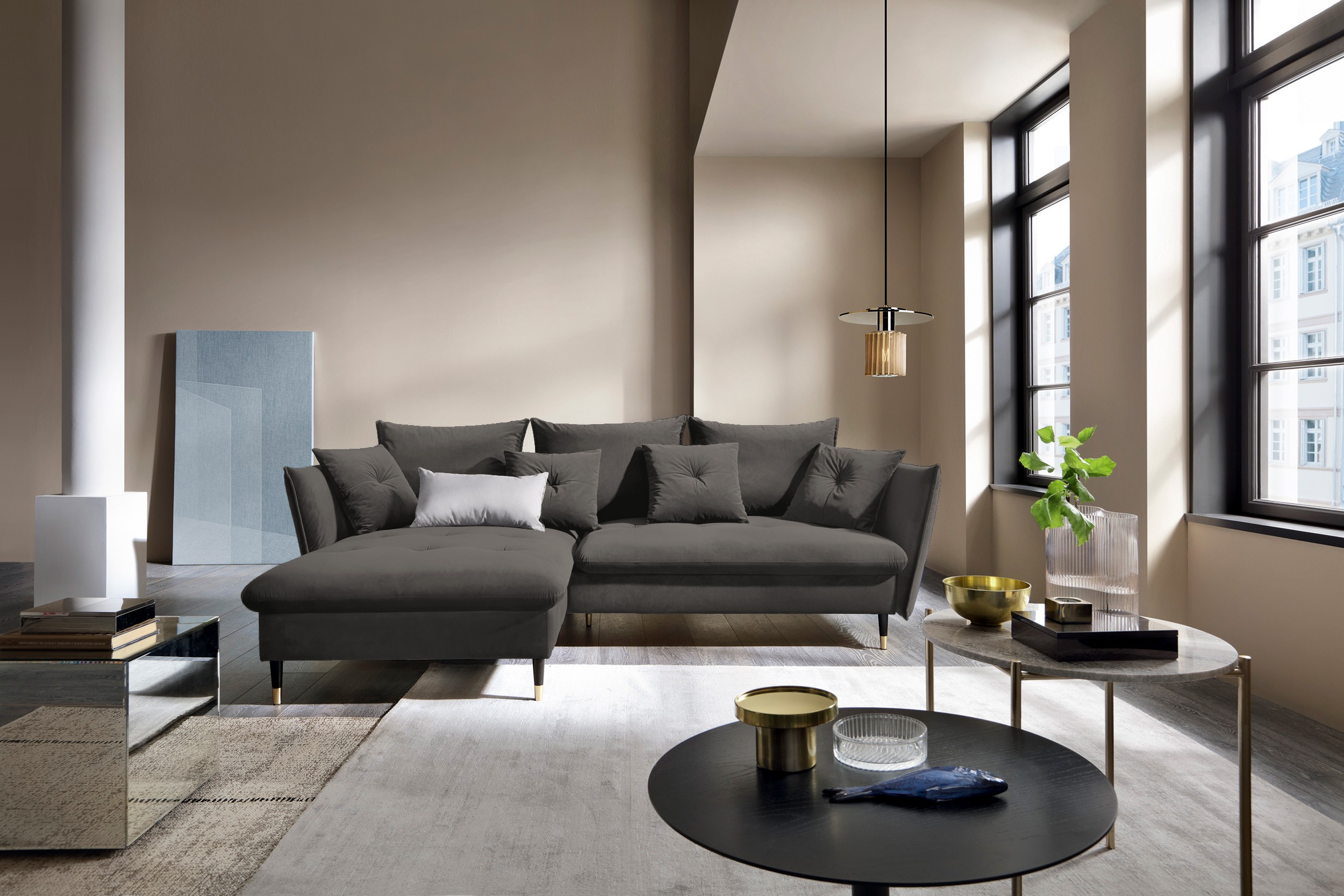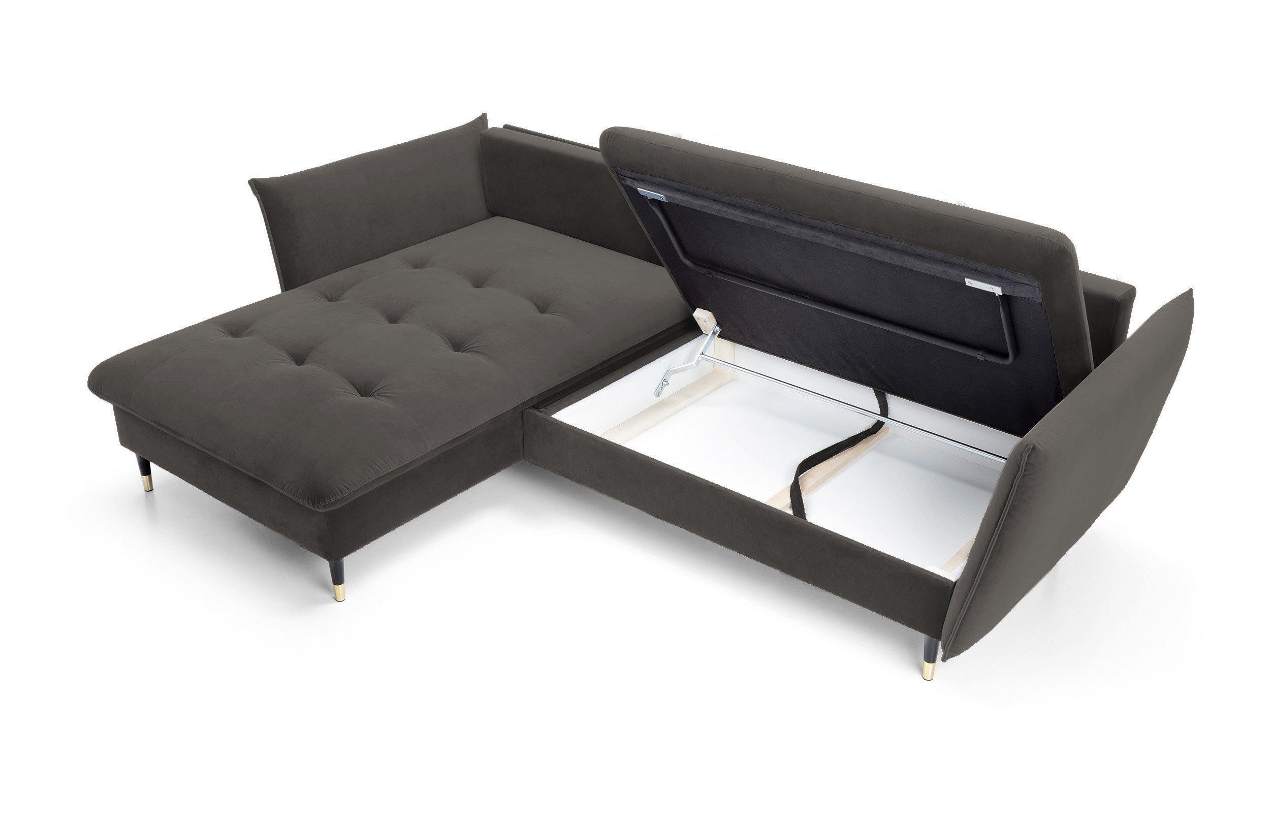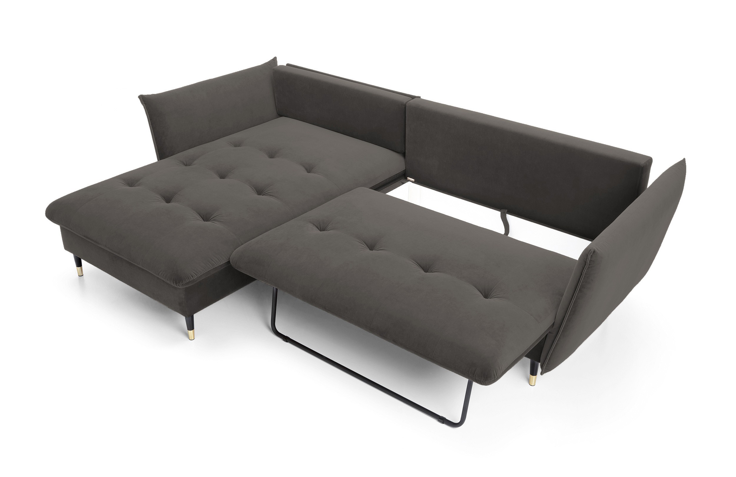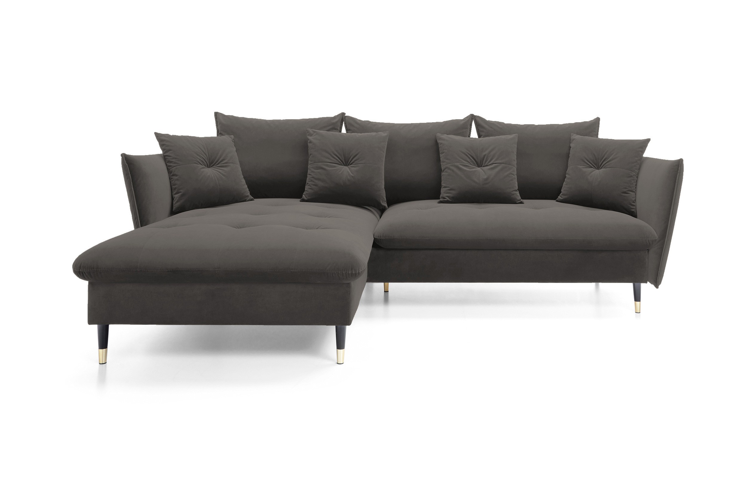 Narożnik GLAM Lewostronny z funkcją spania, zestaw z poduszkami wolnostojący tkanina RIVIERA 95 Ciemny szary DOMO HOME