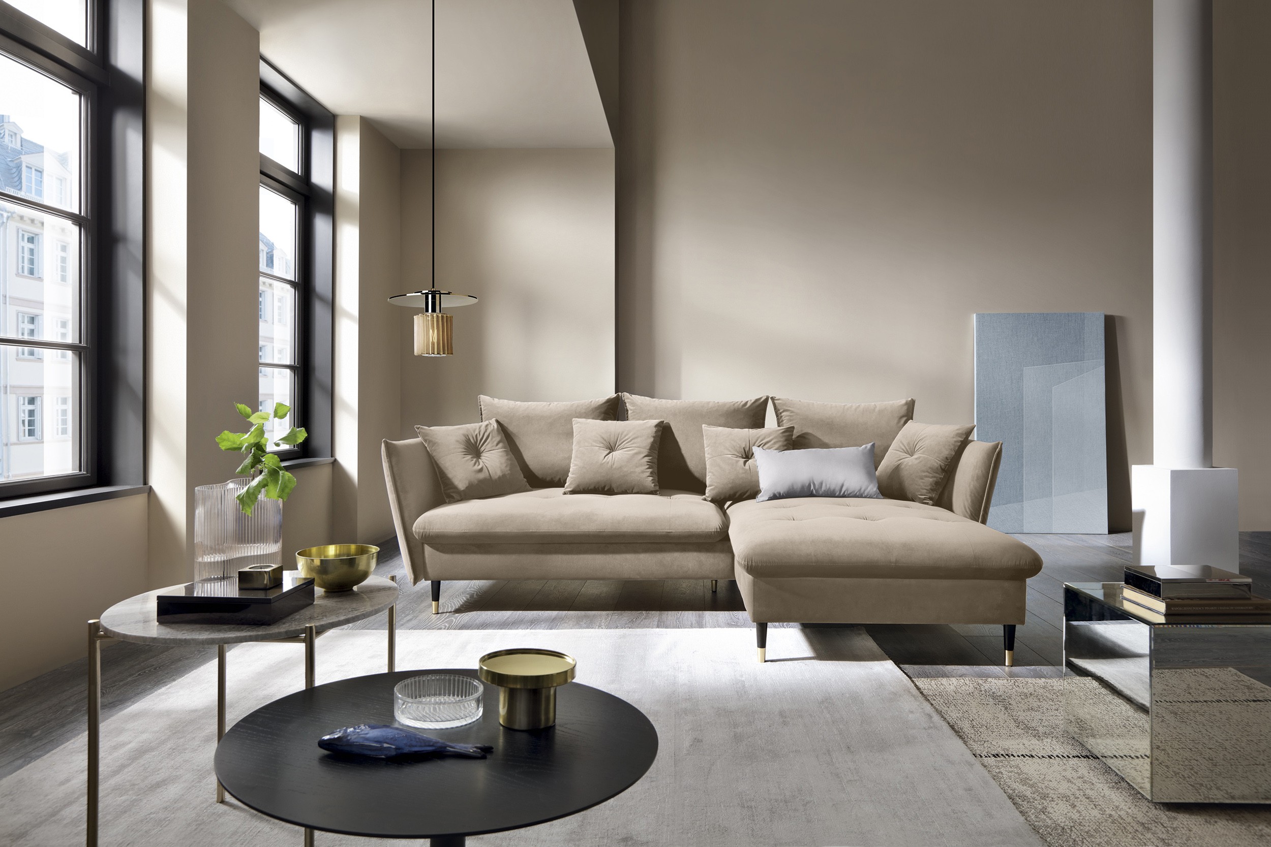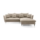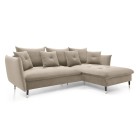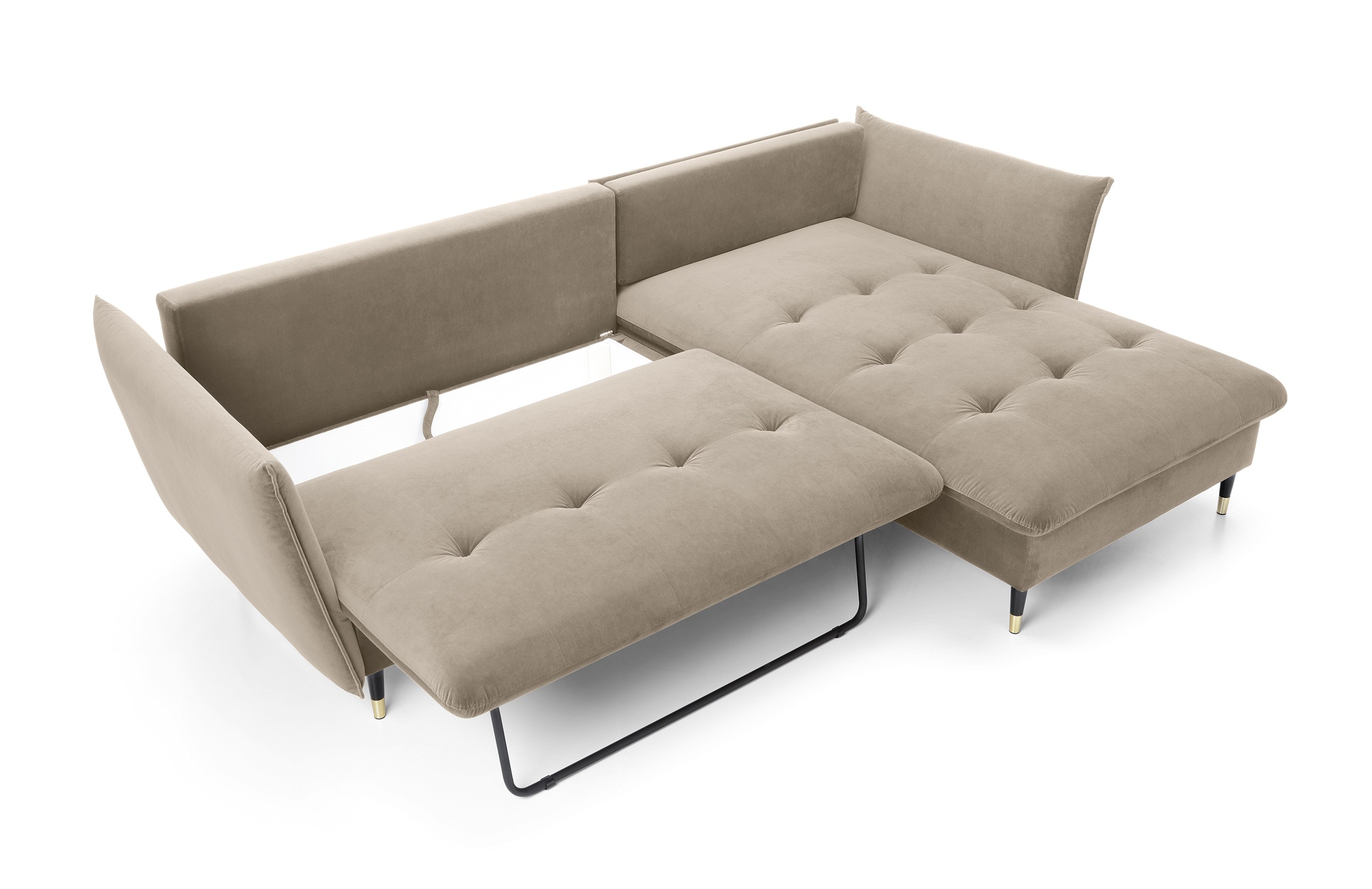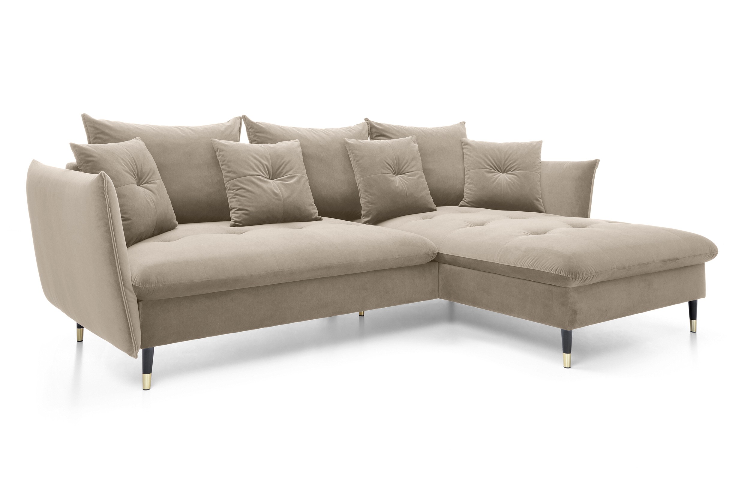 Narożnik GLAM Prawostronny z funkcją spania, zestaw z poduszkami wolnostojący tkanina RIVIERA 16 Beżowy DOMO HOME