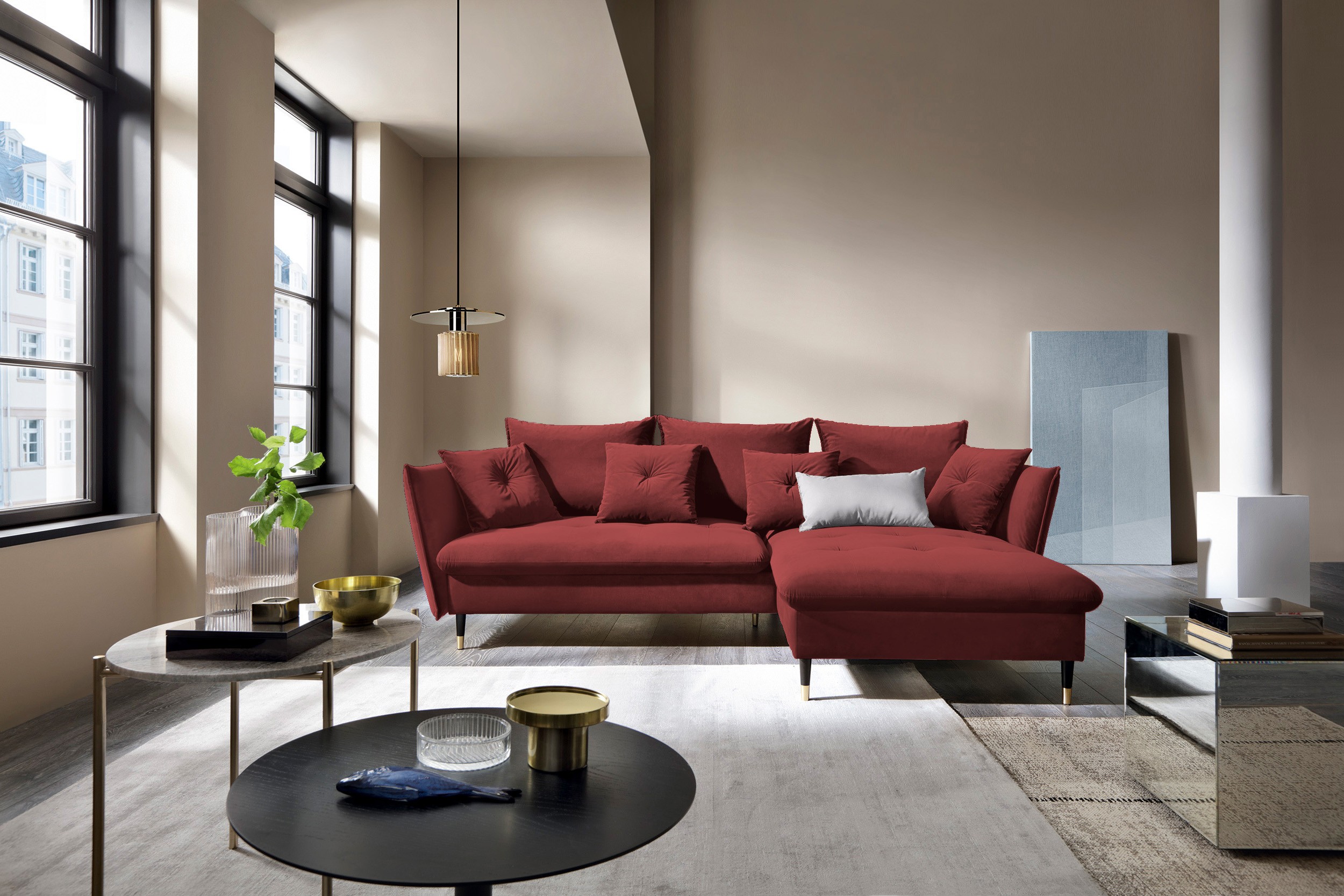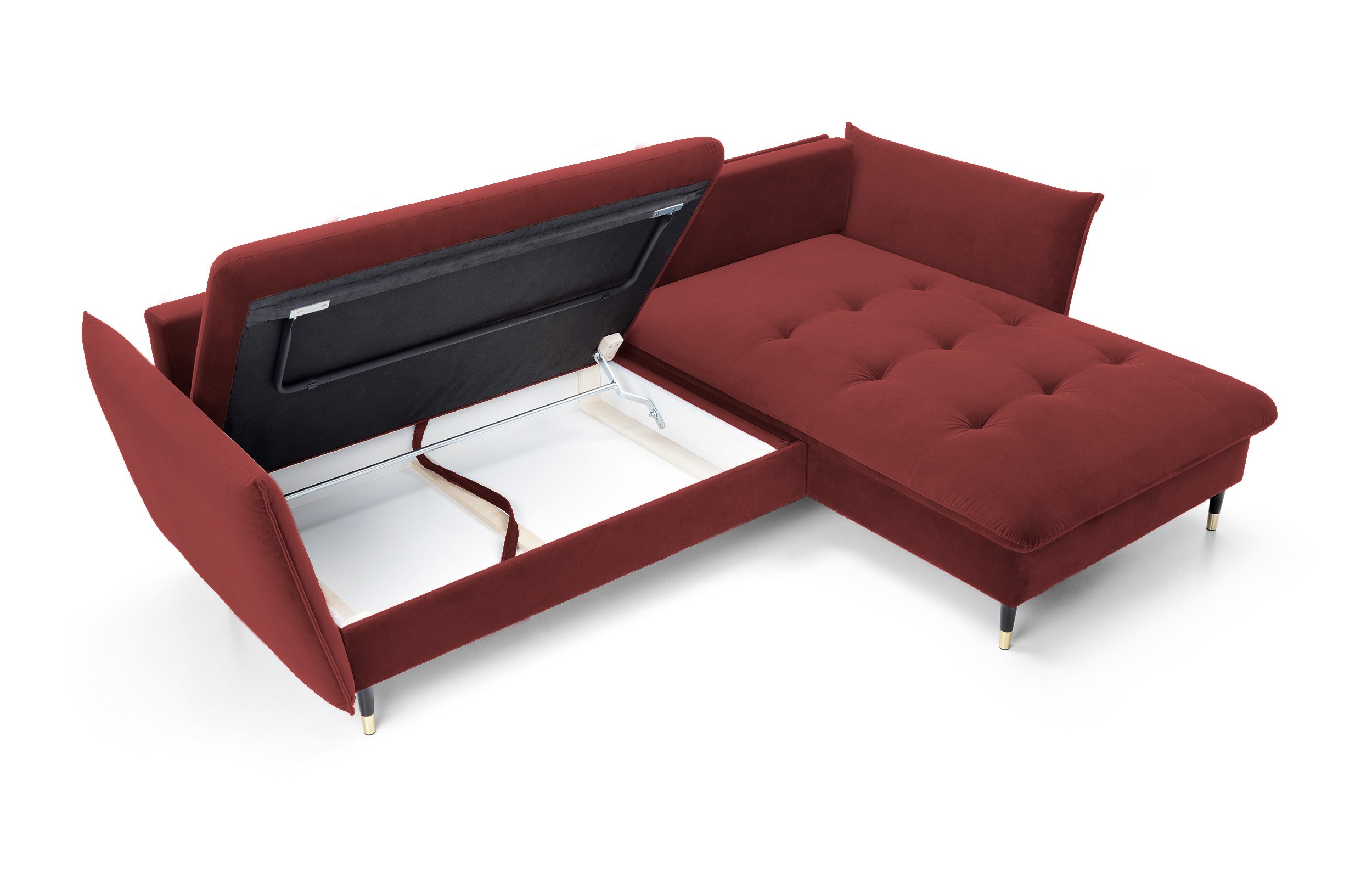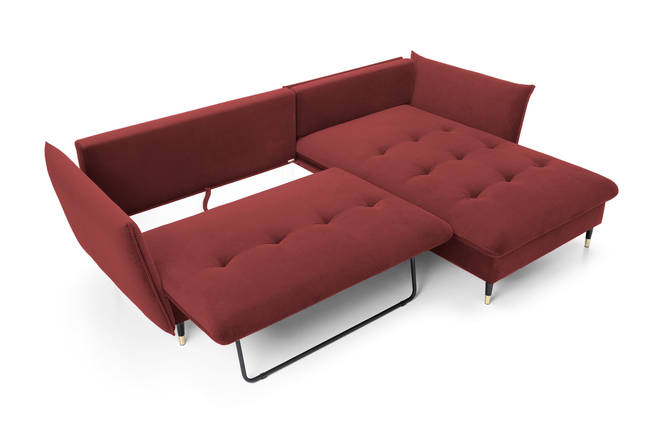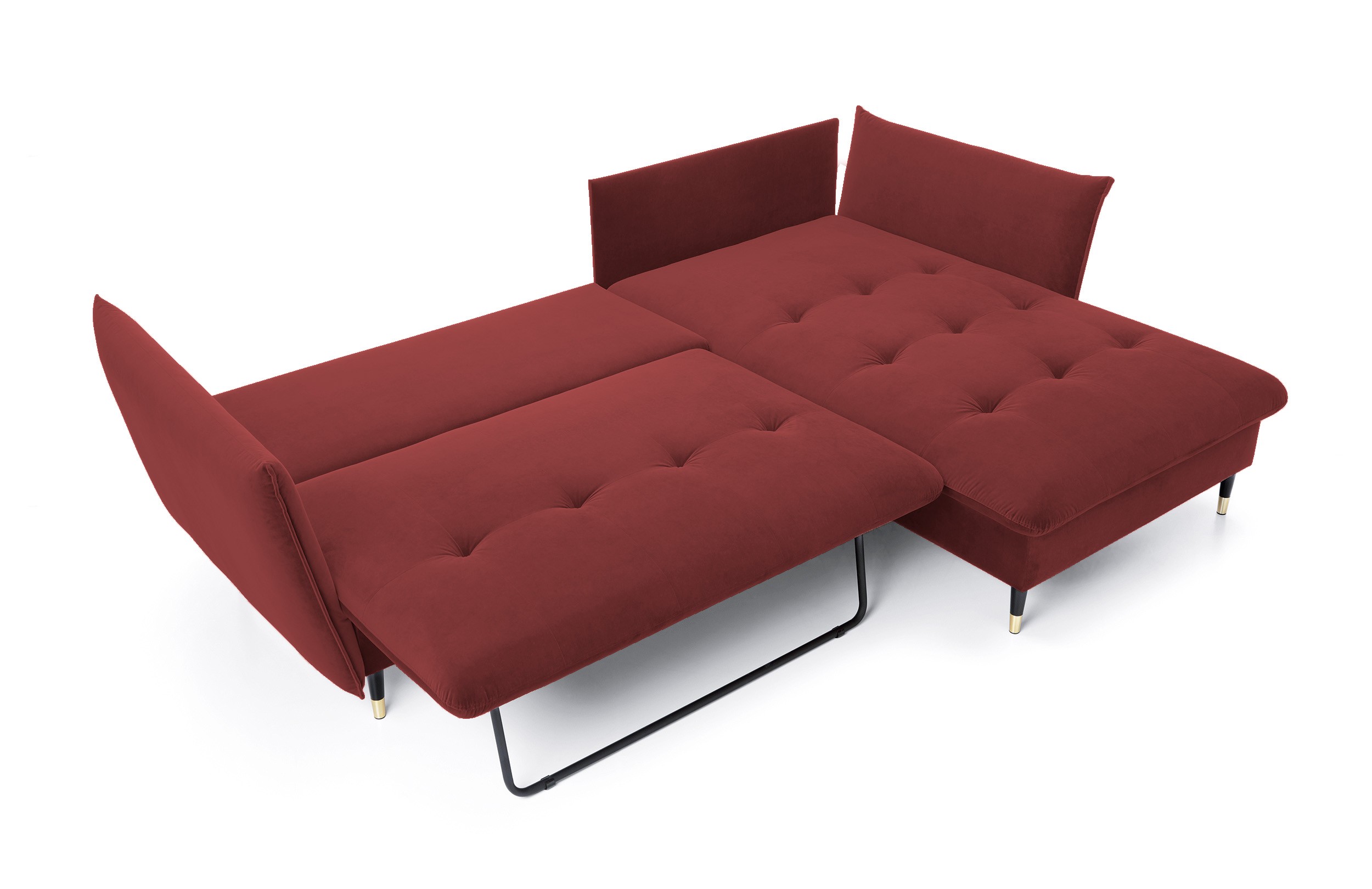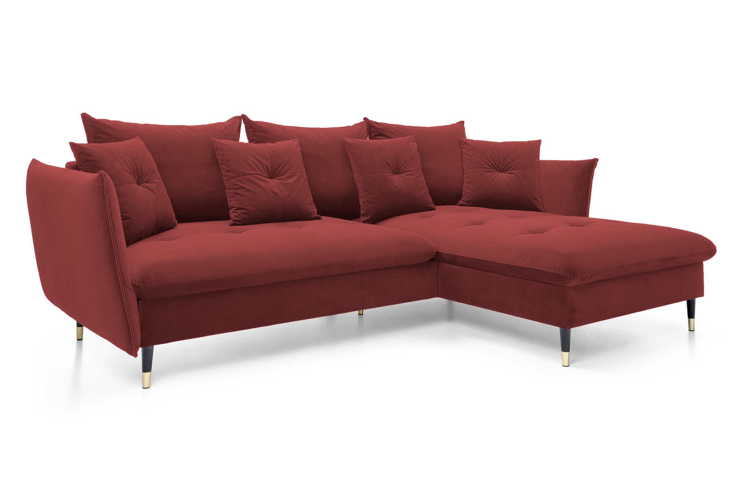 Narożnik GLAM Prawostronny z funkcją spania, zestaw z poduszkami wolnostojący tkanina RIVIERA 61 Burgundowy DOMO HOME