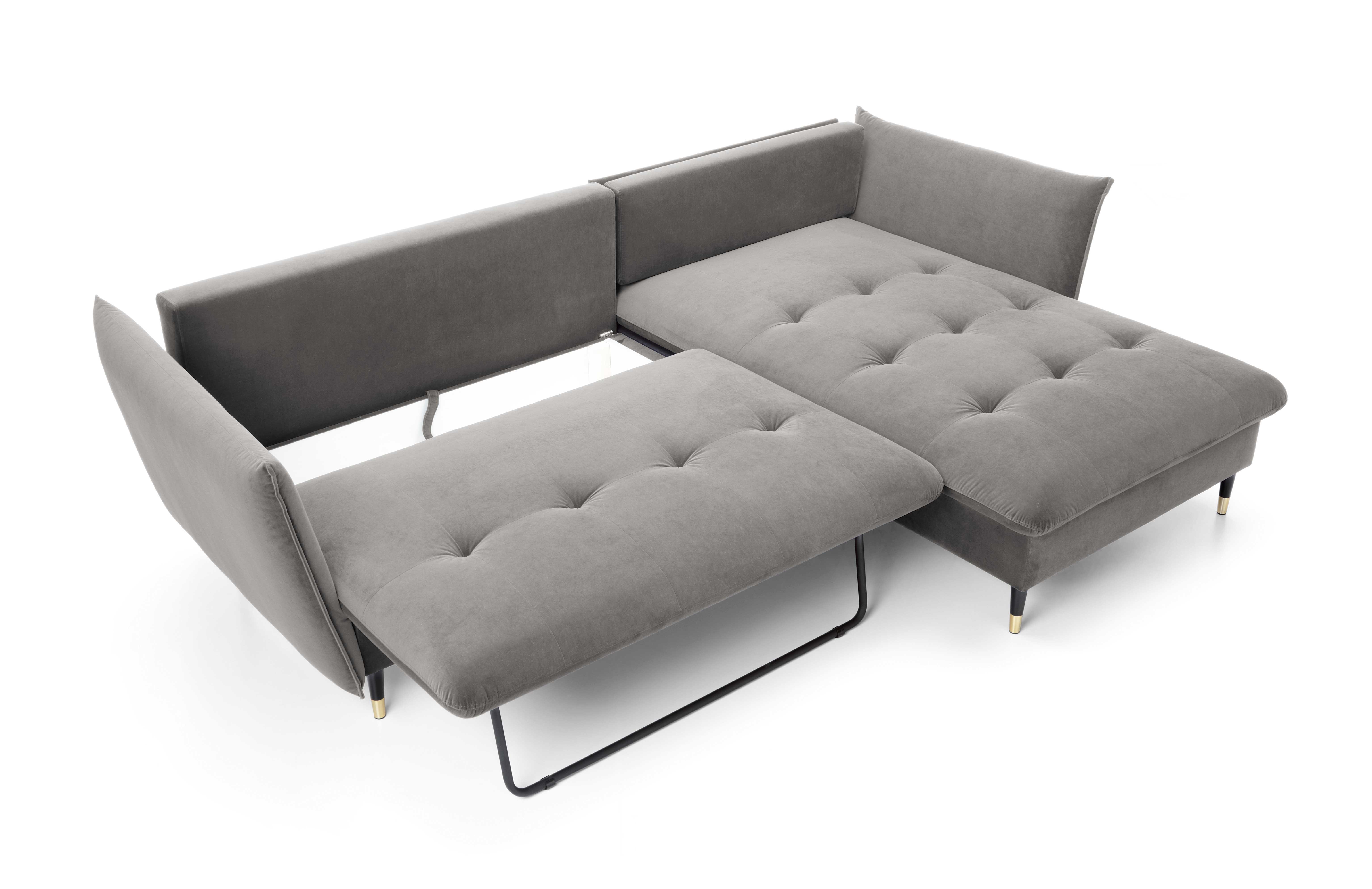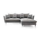 Narożnik GLAM Prawostronny z funkcją spania, zestaw z poduszkami wolnostojący tkanina RIVIERA 91 Szary DOMO HOME