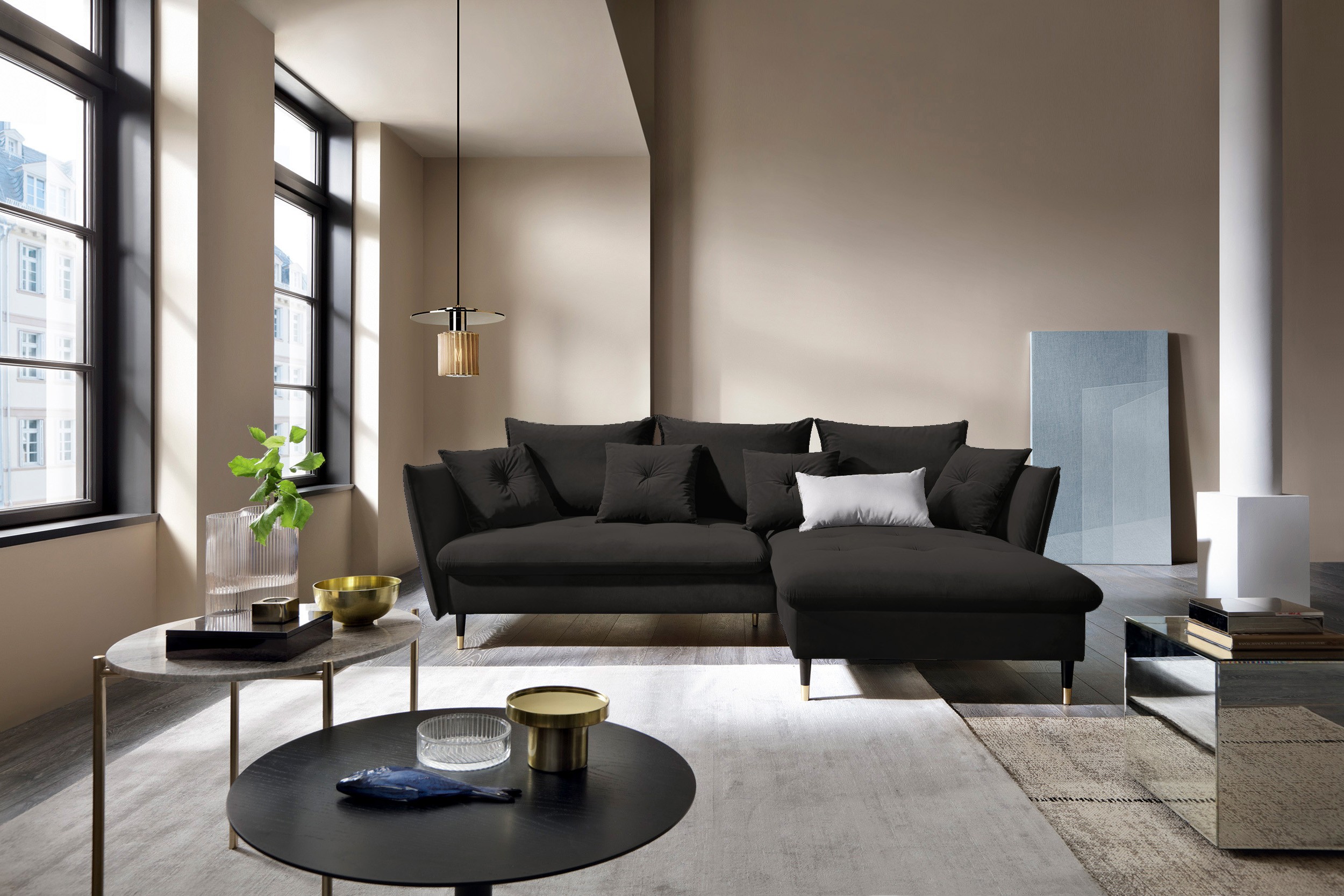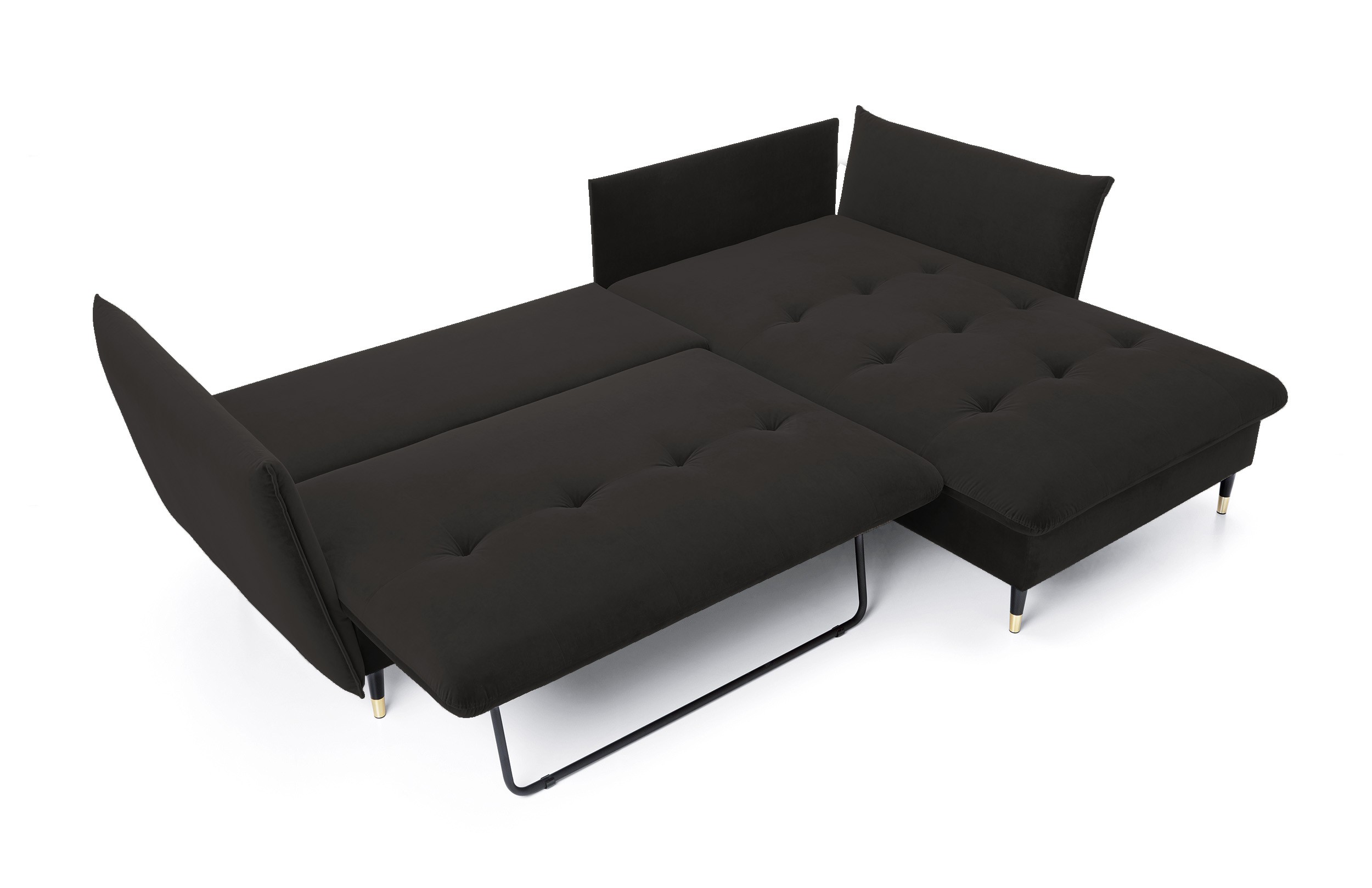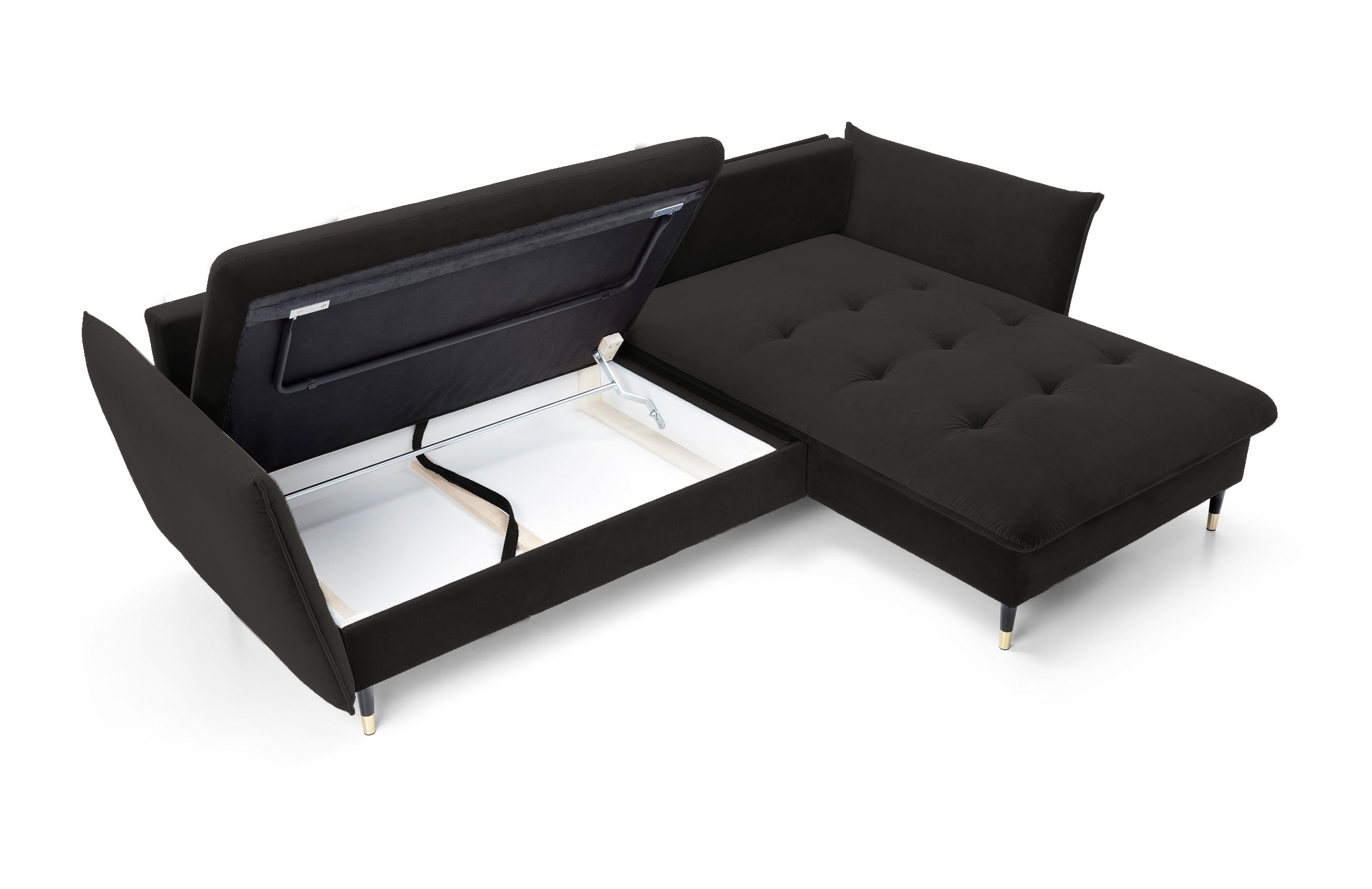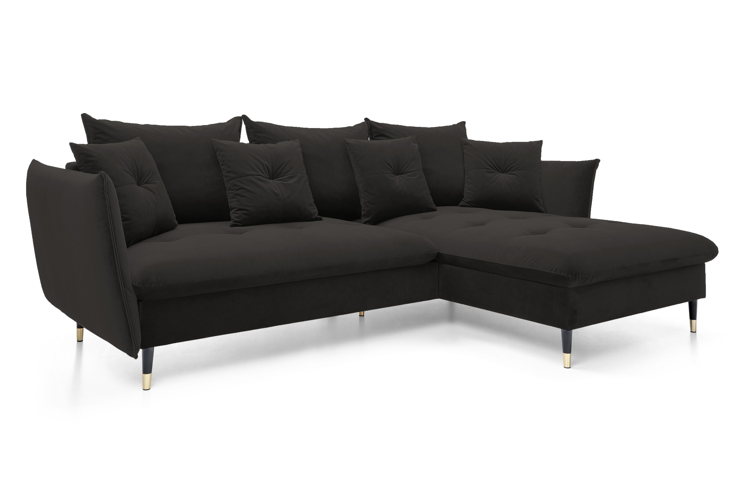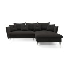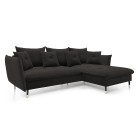 Narożnik GLAM Prawostronny z funkcją spania, zestaw z poduszkami wolnostojący tkanina RIVIERA 100 Czarny DOMO HOME