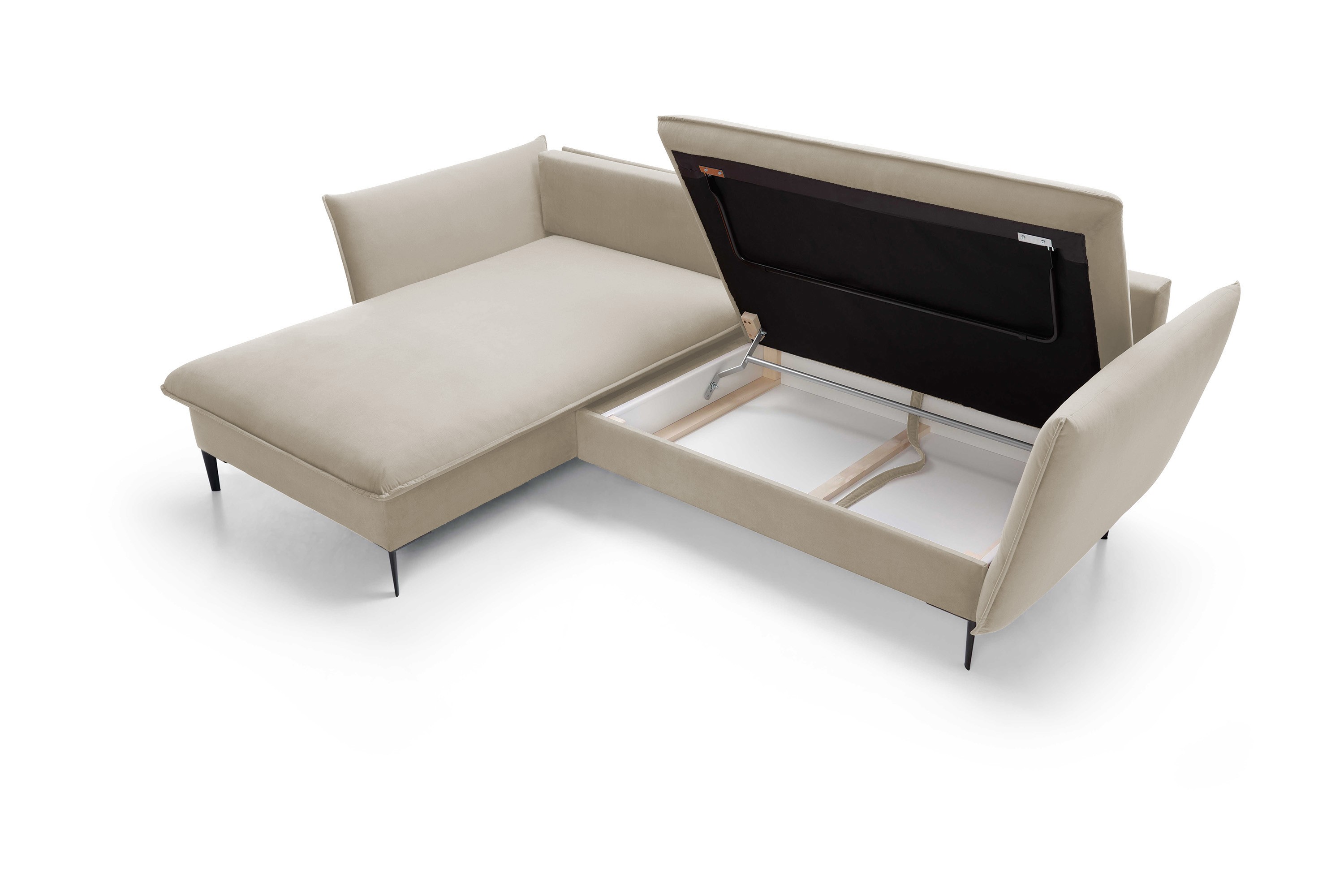 Nowoczesny narożnik łączący minimalistyczny design z wysokim komfortem użytkowania. Idealnie komponuje się z wnętrzami loftowymi, skandynawskimi i nowoczesnymi. Wyposażony w funkcję spania i pojemnik na pościel, łączy estetykę z praktycznością.