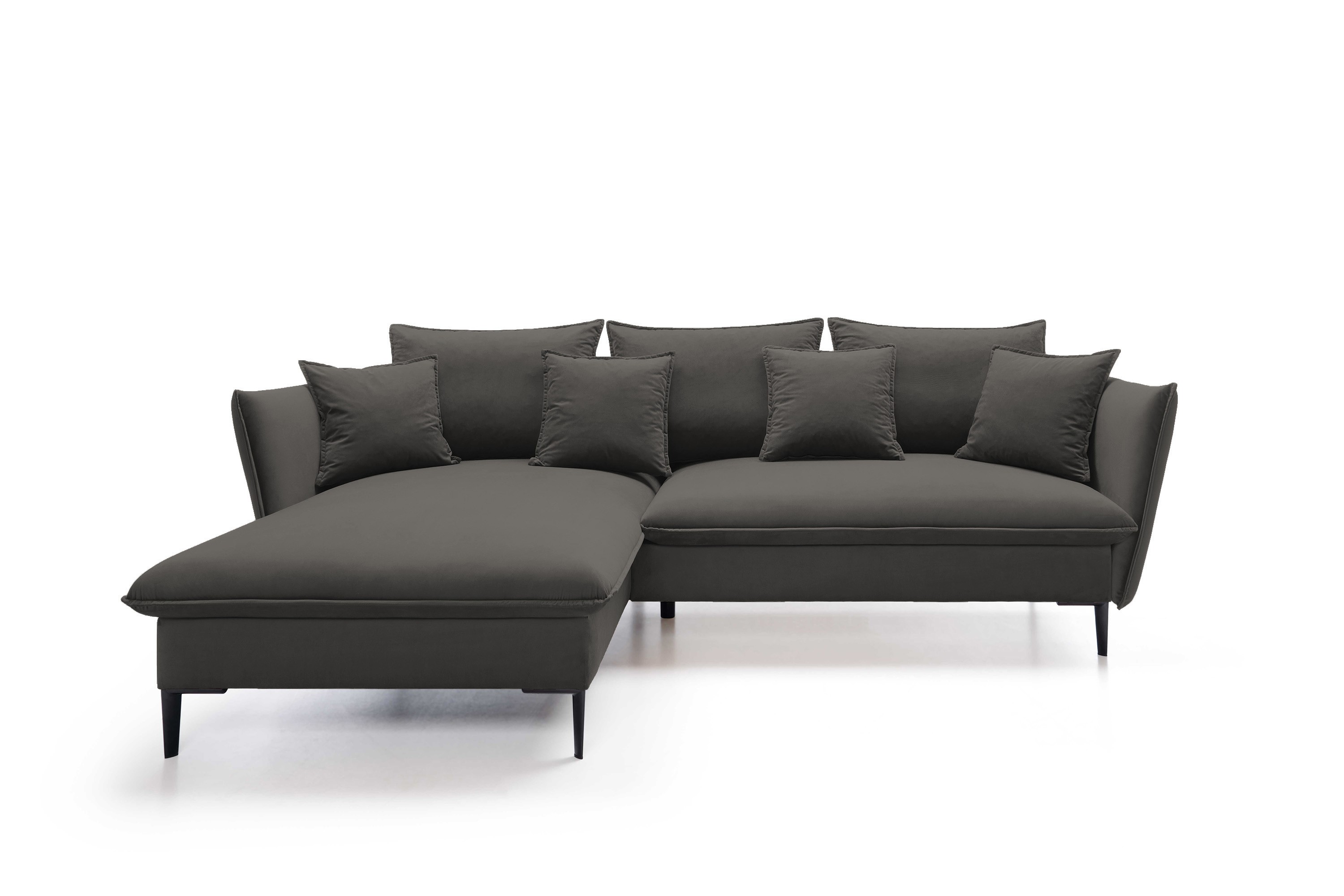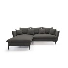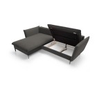 Narożnik GLOSS Lewostronny z funkcją spania, zestaw z poduszkami wolnostojący tkanina RIVIERA 100 Czarny WERSAL
