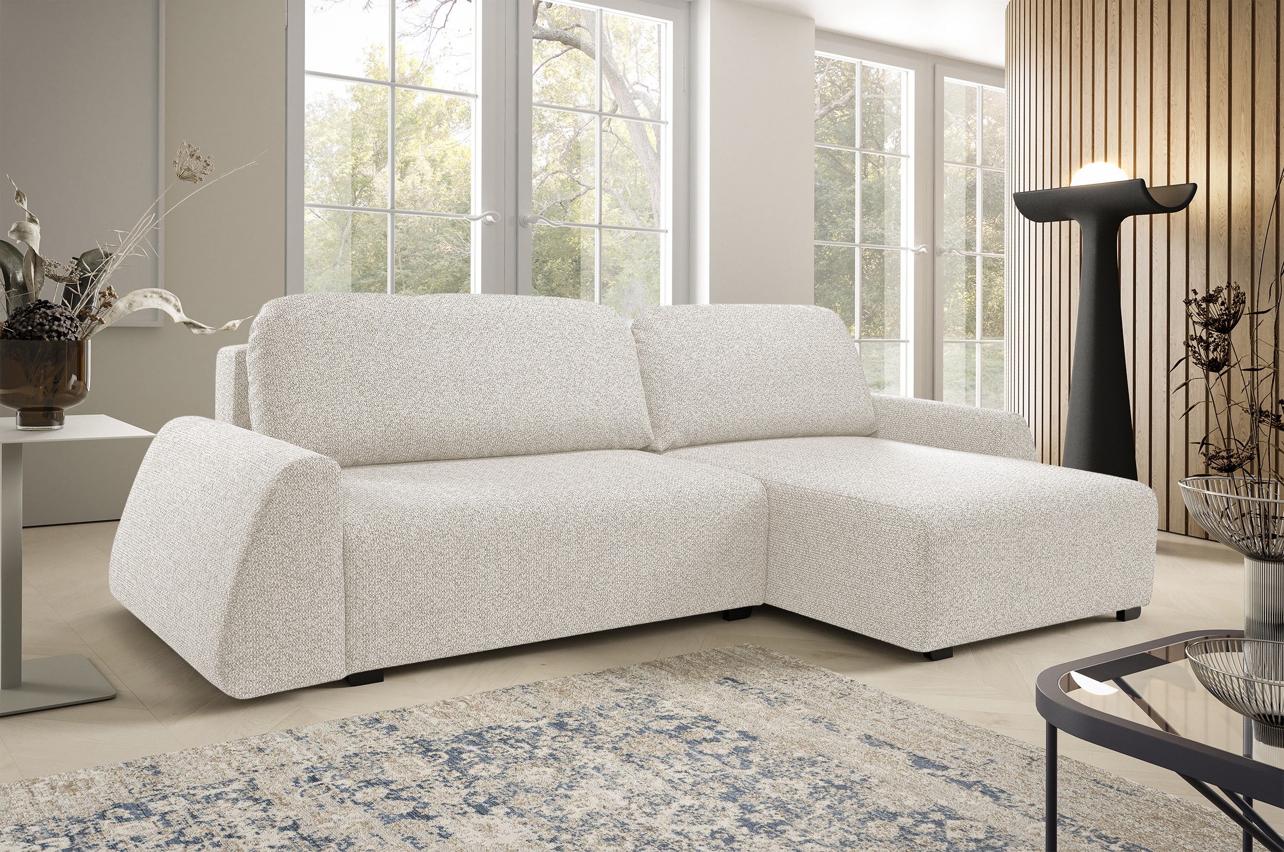 Narożnik ALMI Prawostronny z funkcją spania, wolnostojący tkanina EXCITE ME 01 Biały