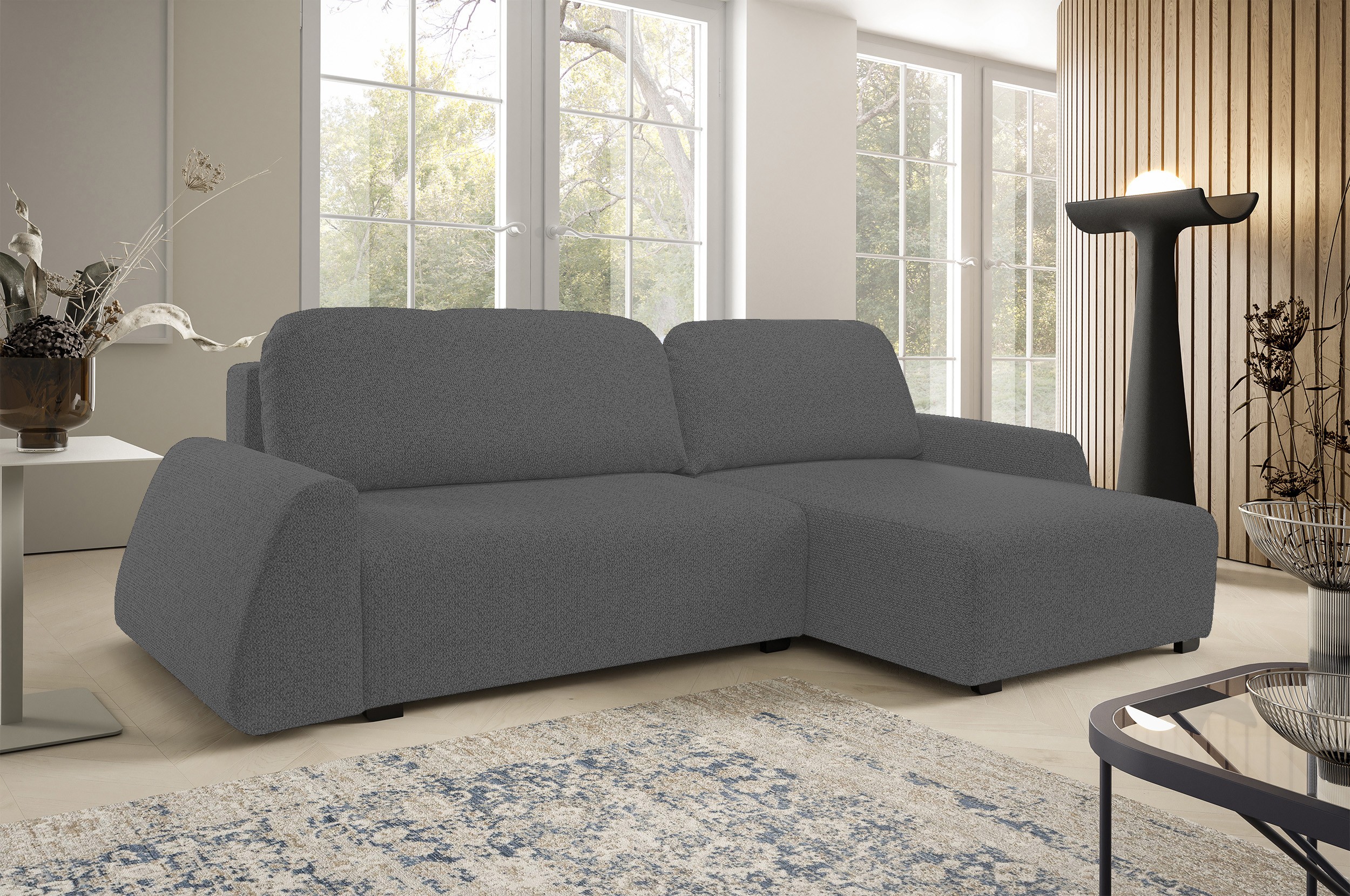 Narożnik ALMI Prawostronny z funkcją spania, wolnostojący tkanina EXCITE ME 06 Szary