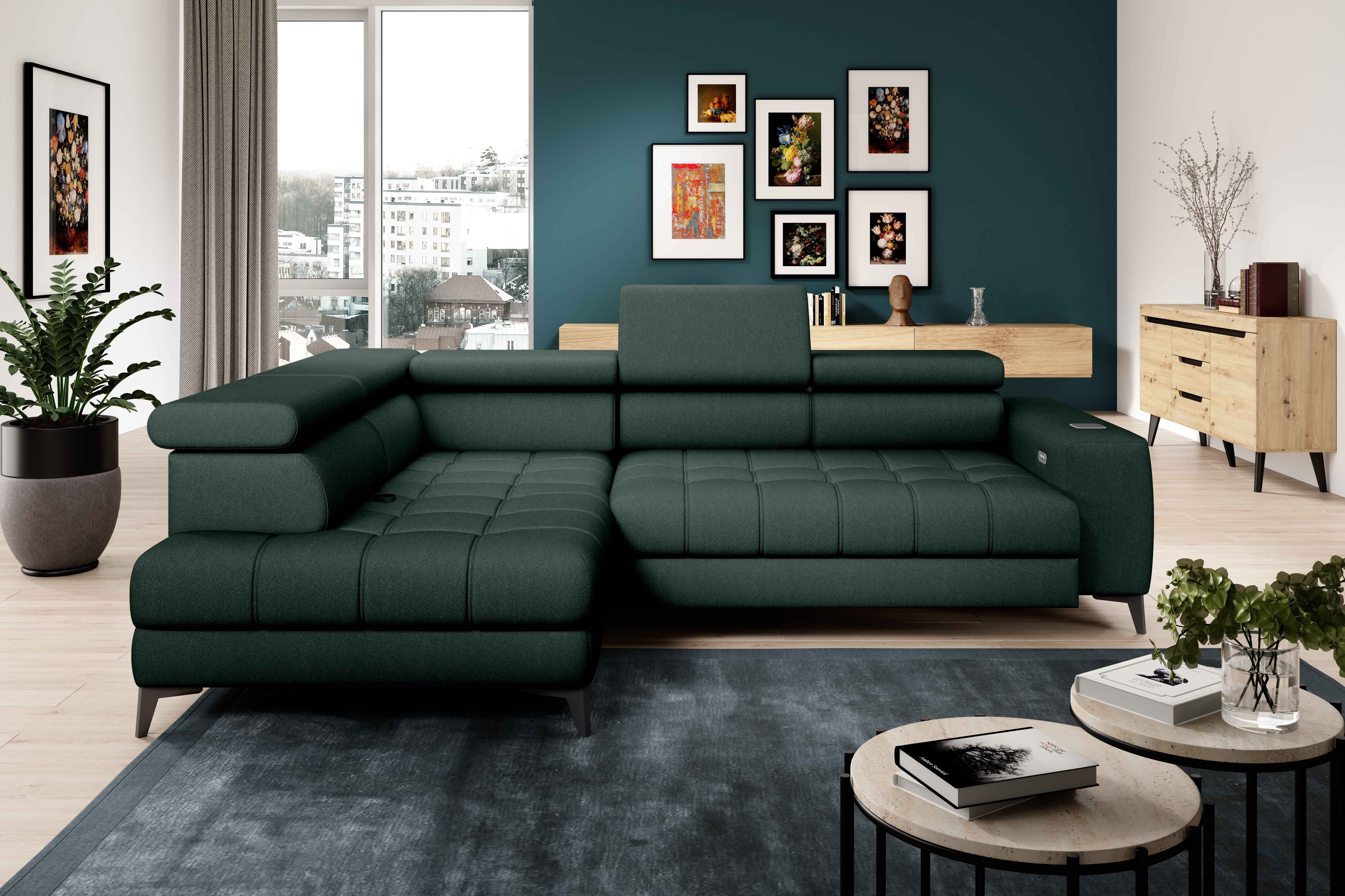 Narożnik BAGGIO Lewostronny z funkcją spania, wolnostojący tkanina LETTO 39 Ciemna Zieleń WERSAL