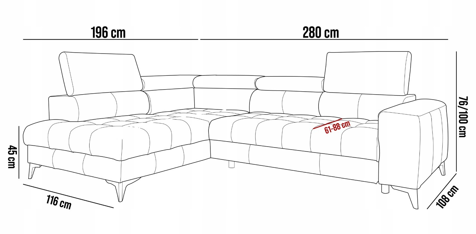 Nowoczesny design z regulowanymi zagłówkami i miękkimi poduszkami gwarantuje wygodę i styl w Twoim salonie.