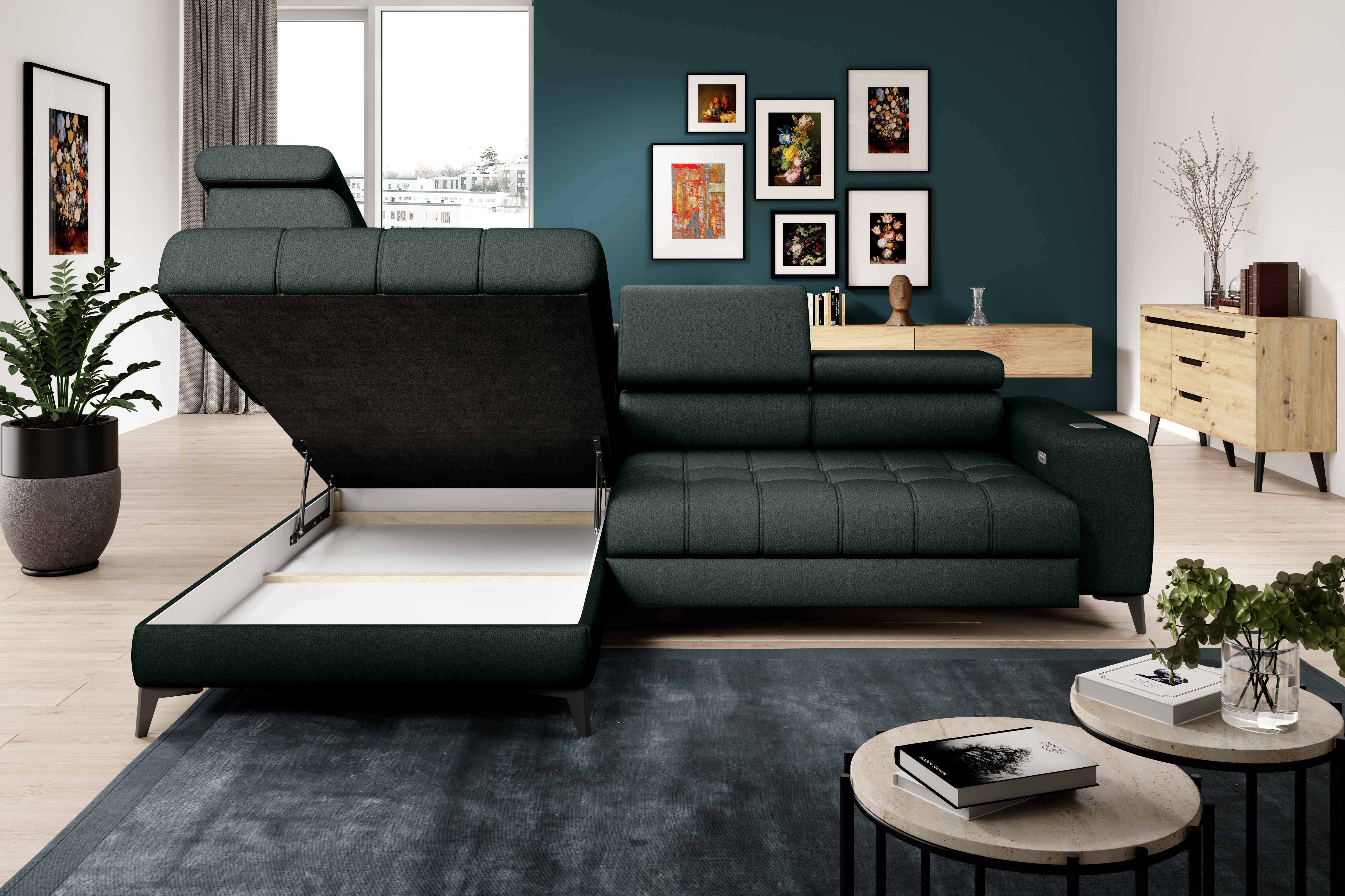 Nowoczesny narożnik BAGGIO z funkcją spania i pojemnikiem na pościel
