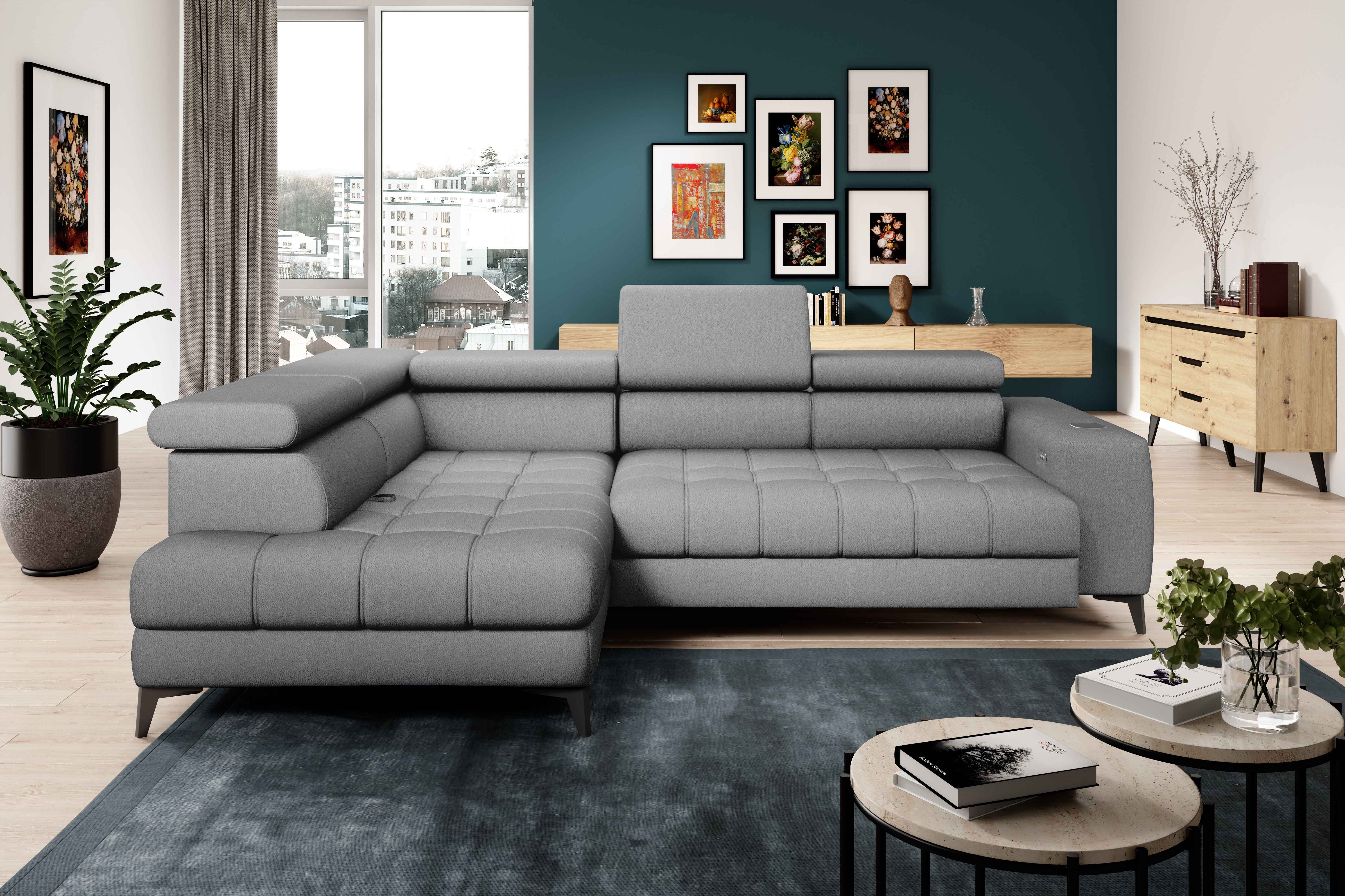 Narożnik BAGGIO Lewostronny z funkcją spania, wolnostojący tkanina LETTO 03 Popielaty WERSAL