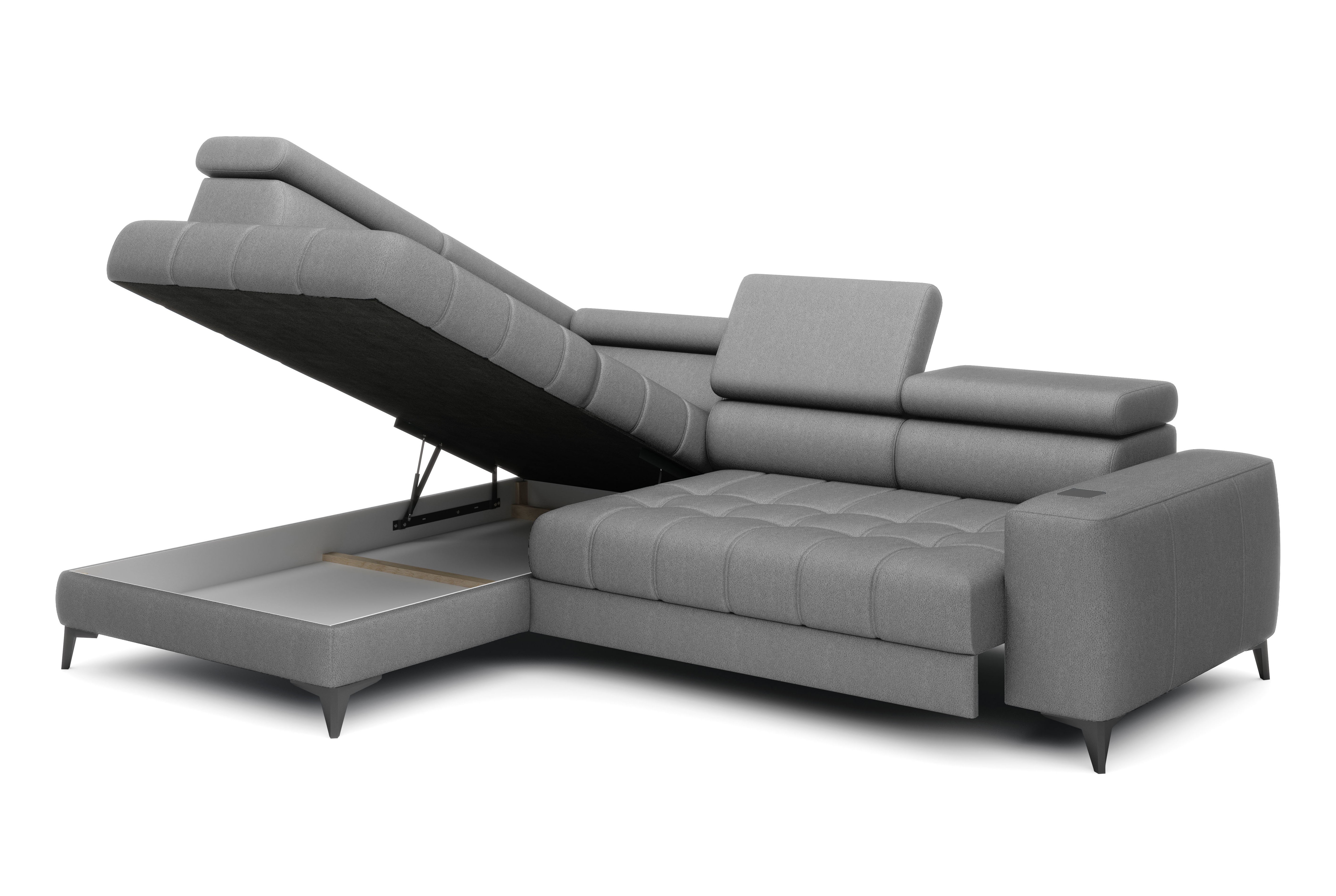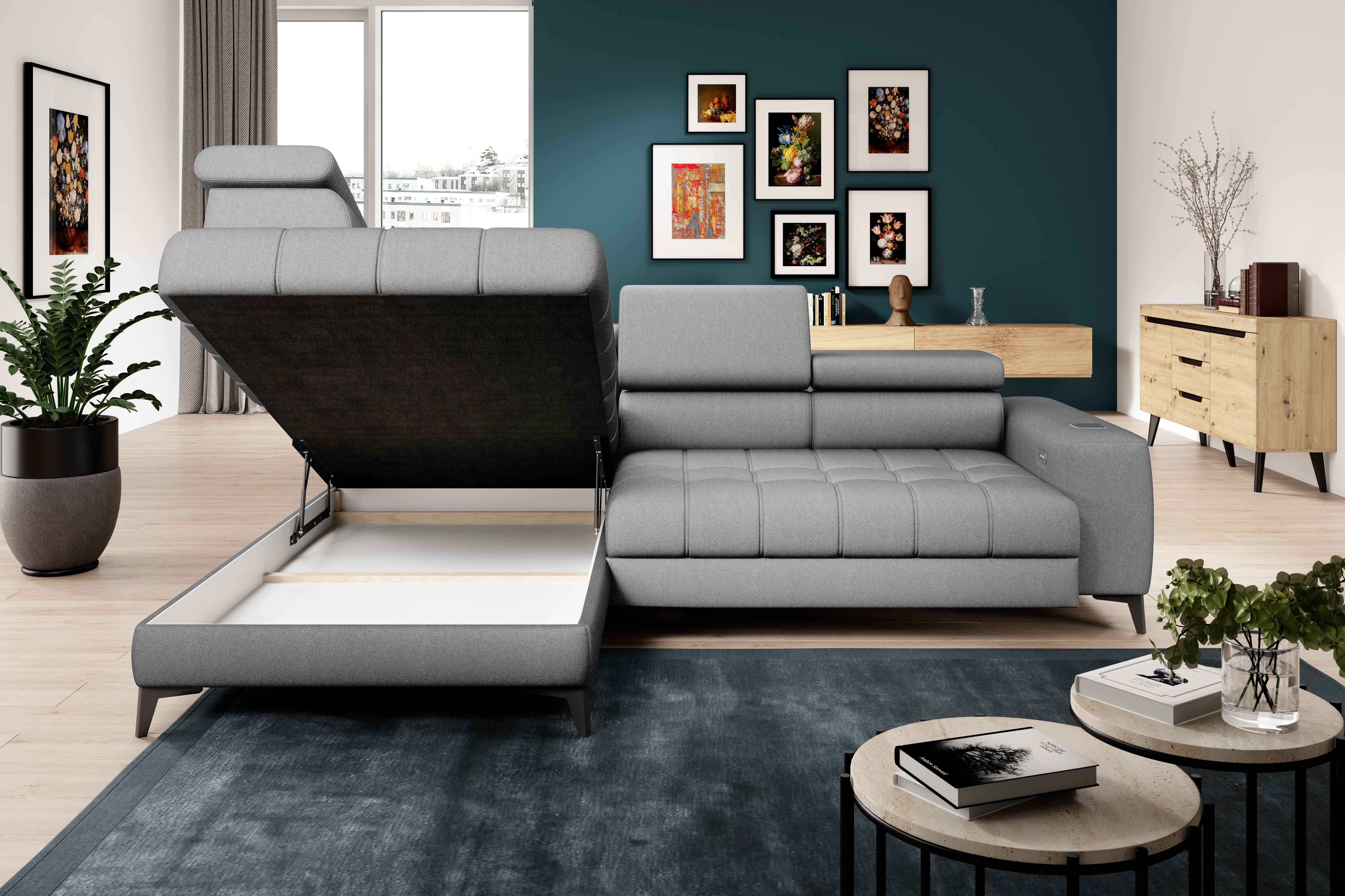 Nowoczesny narożnik BAGGIO z funkcją spania i pojemnikiem na pościel