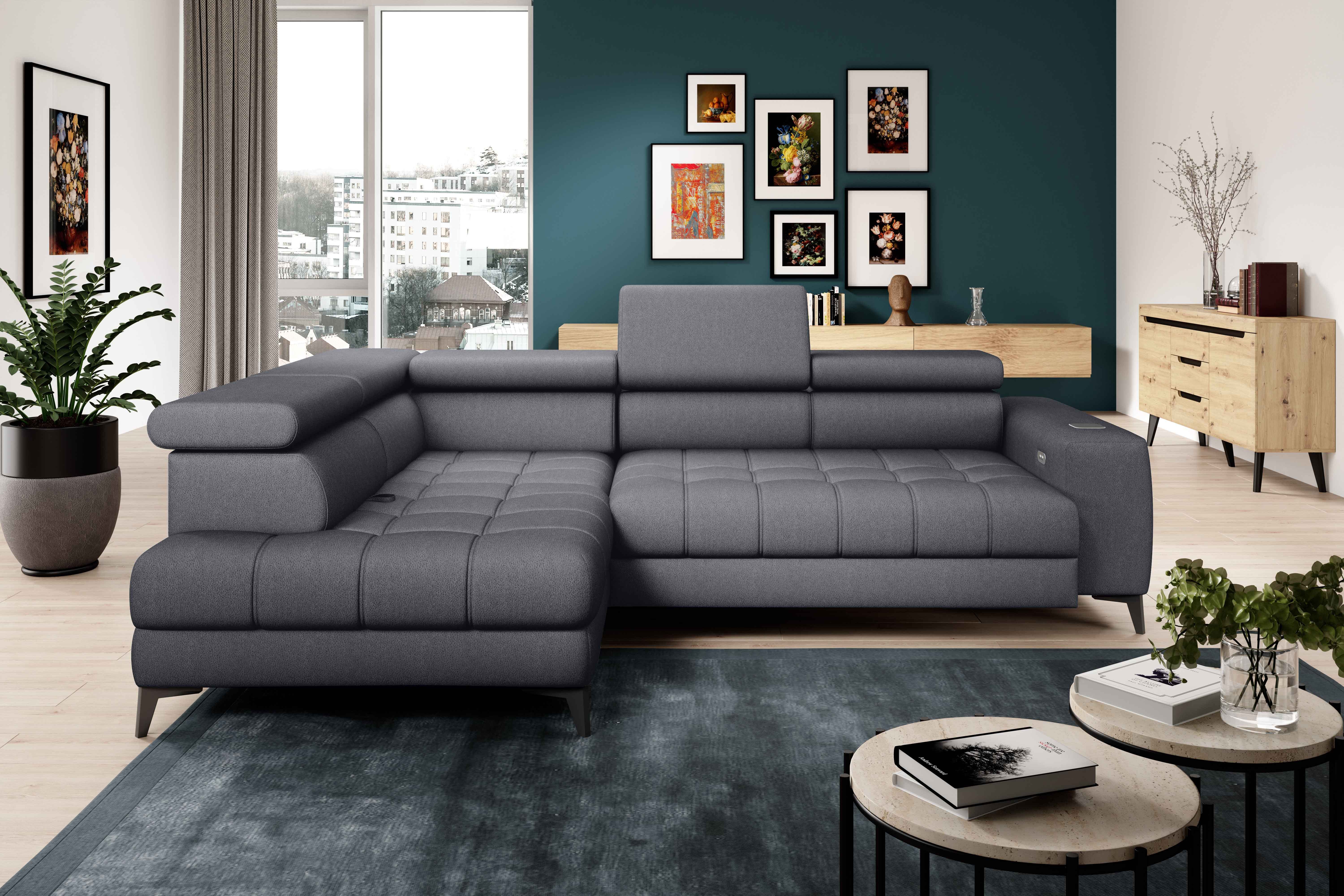 Narożnik BAGGIO Lewostronny z funkcją spania, wolnostojący tkanina LETTO 93 Ciemnoszary WERSAL