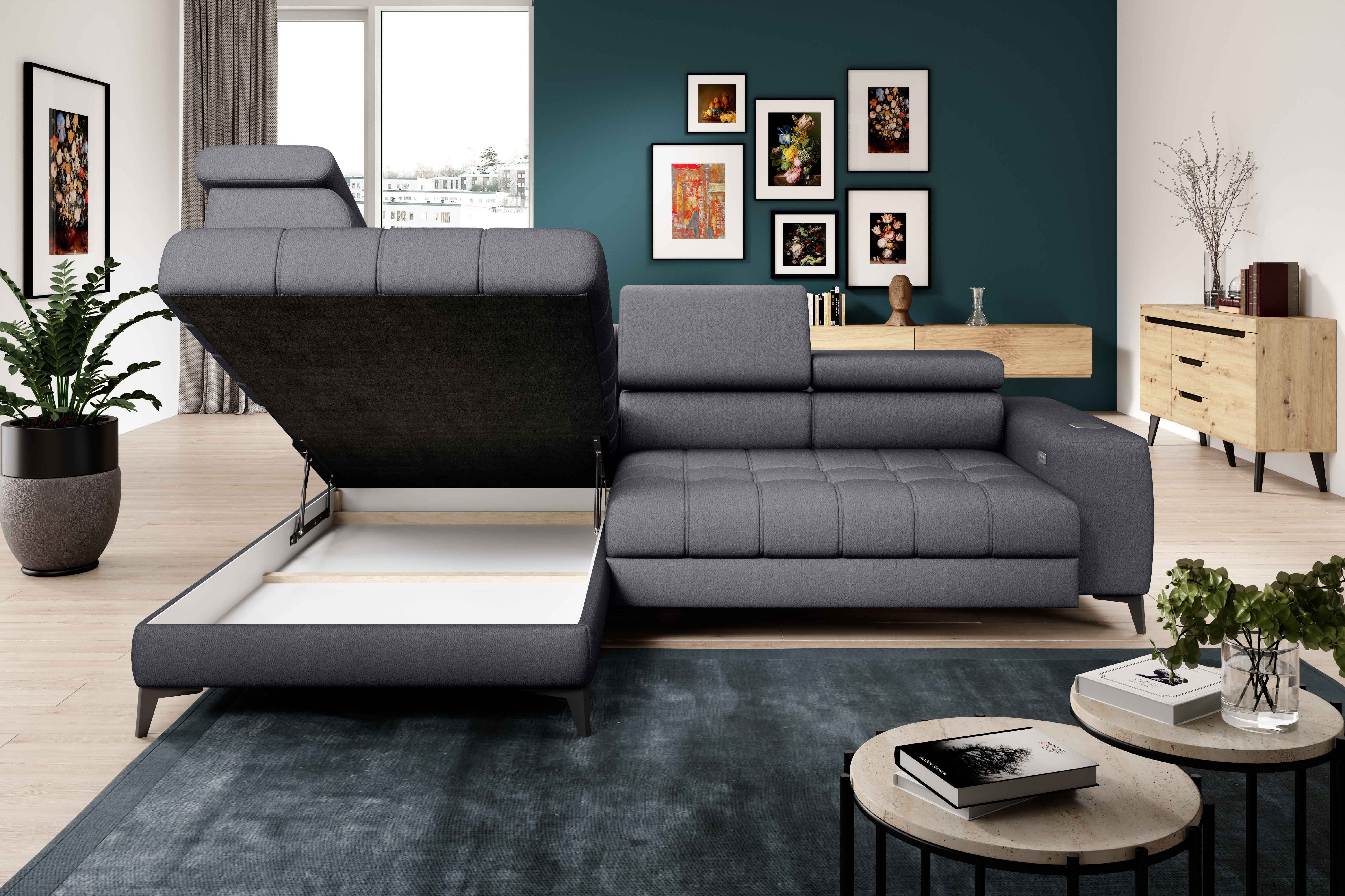 Nowoczesny narożnik BAGGIO z funkcją spania i pojemnikiem na pościel