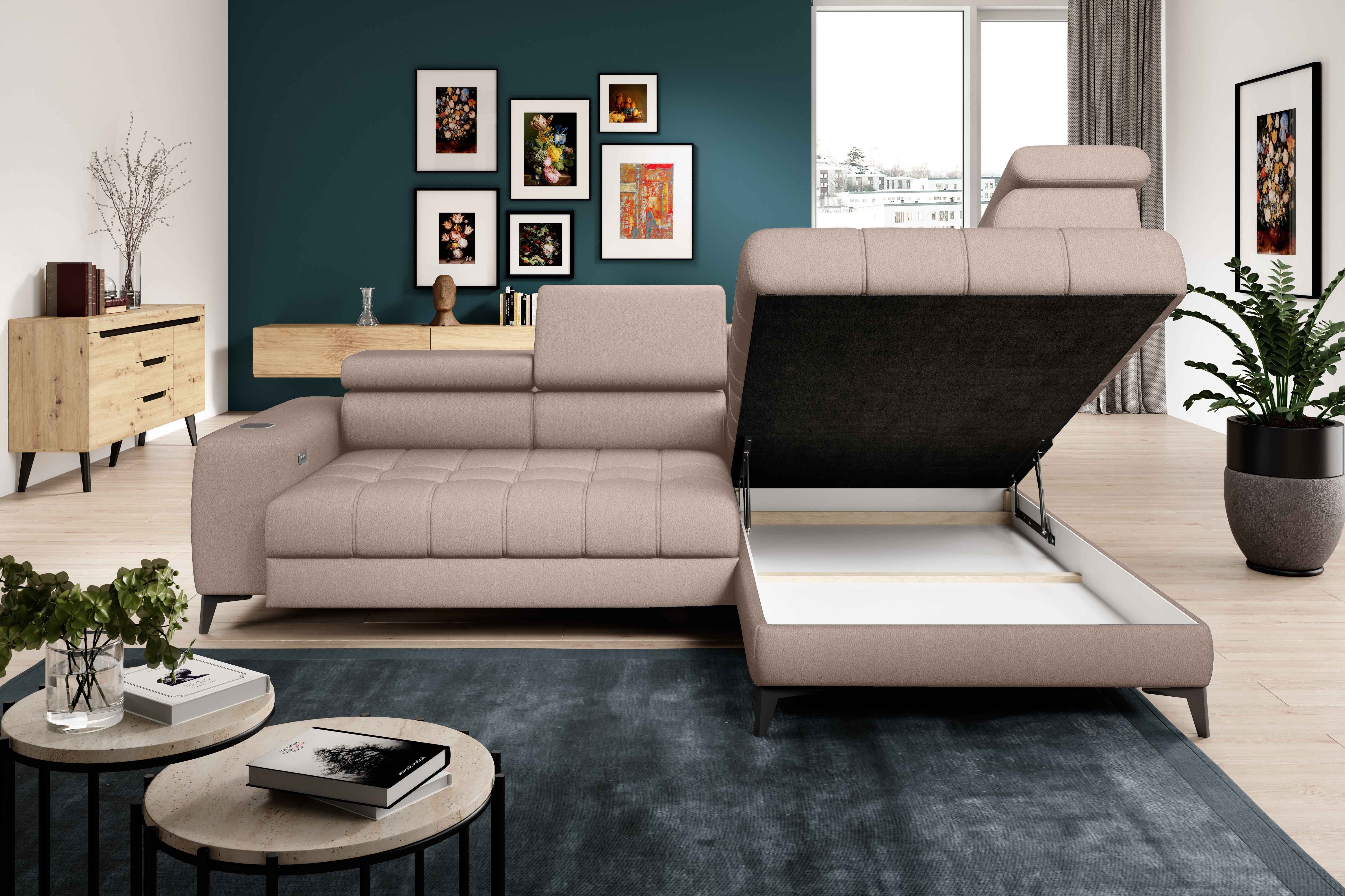 Nowoczesny narożnik BAGGIO z funkcją spania i pojemnikiem na pościel