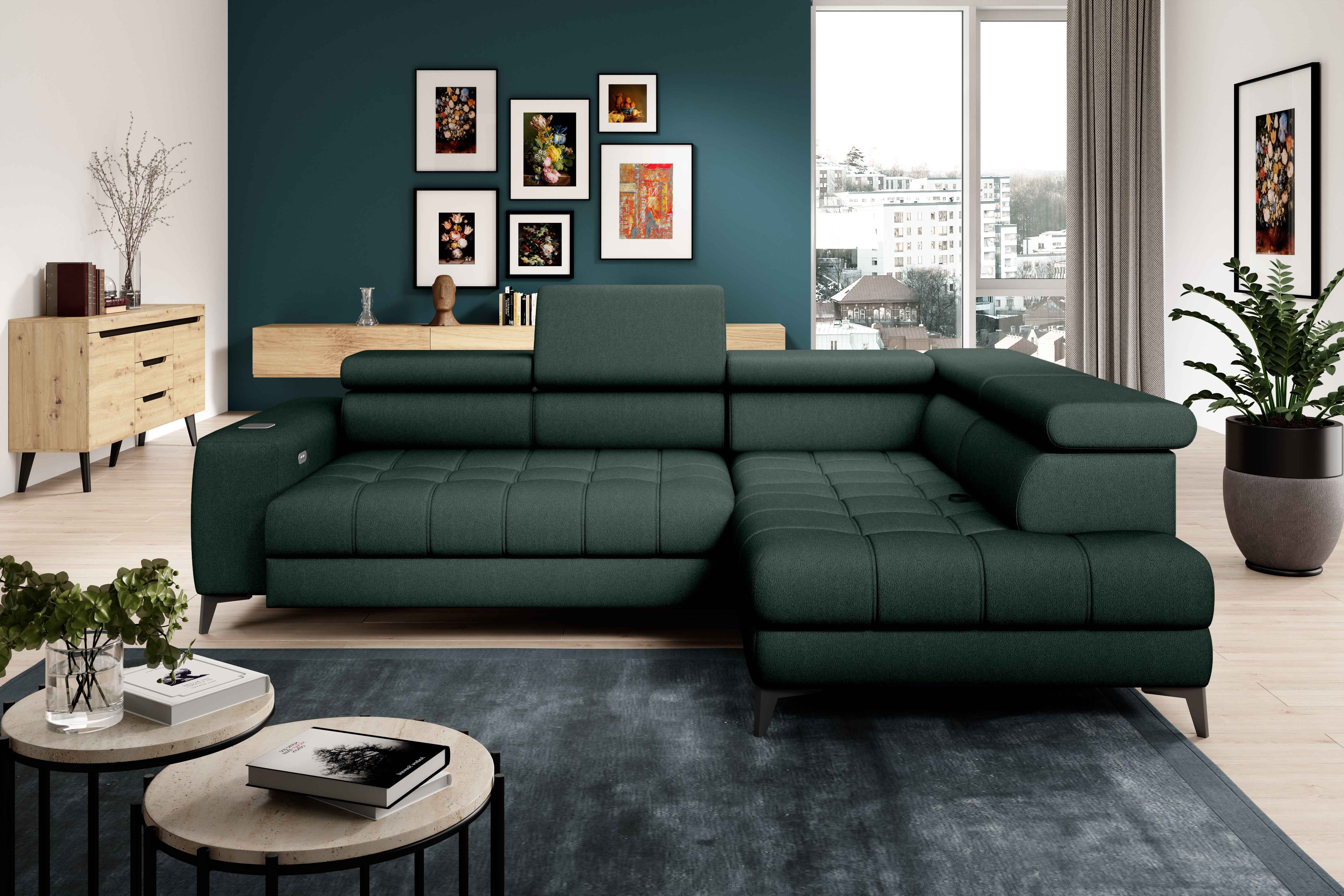 Narożnik BAGGIO Prawostronny z funkcją spania, wolnostojący tkanina LETTO 39 Ciemna Zieleń WERSAL