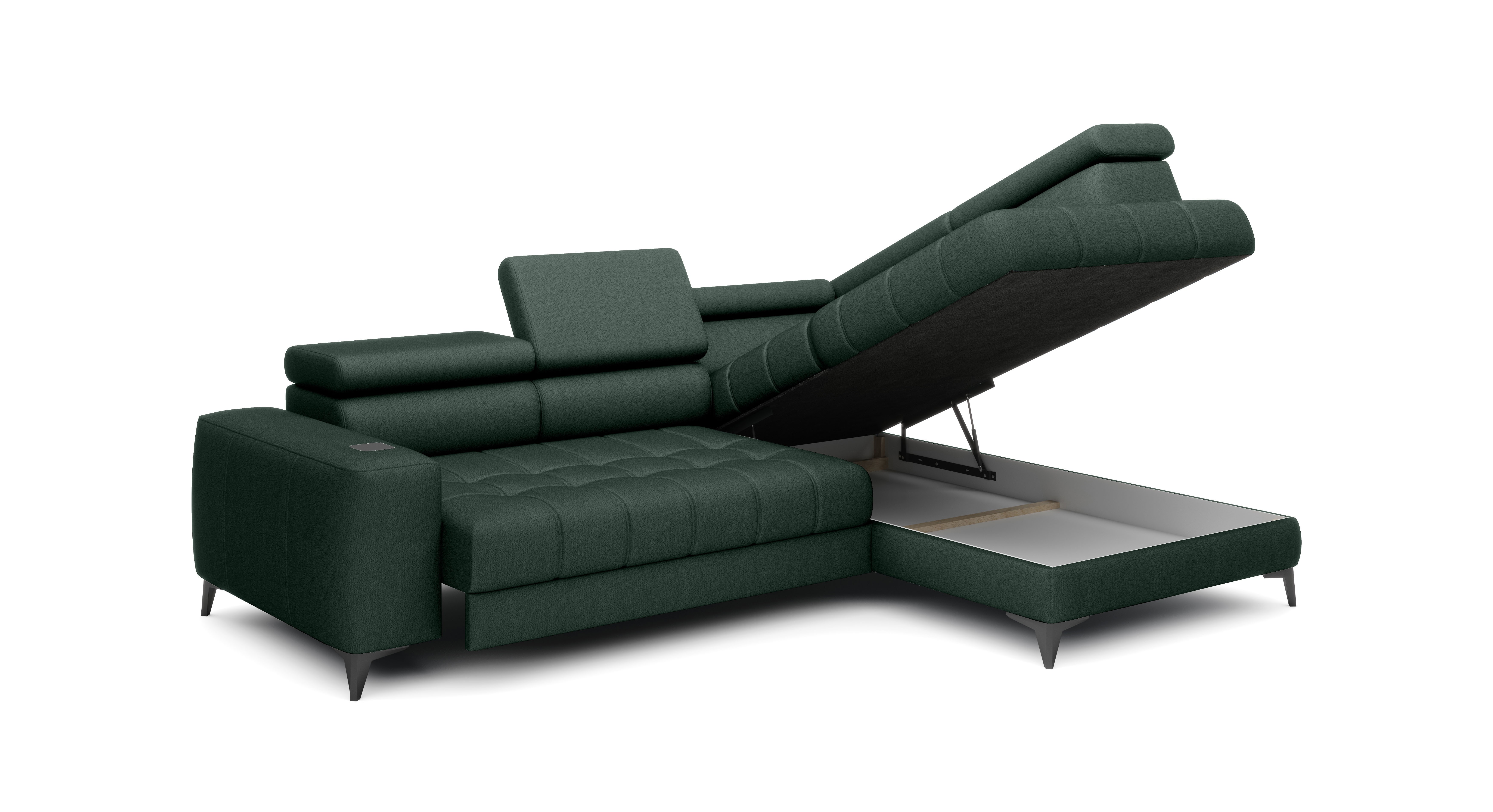 Wyposażony w funkcję spania oraz praktyczny pojemnik na pościel, sprawdzi się zarówno w codziennym użytkowaniu, jak i podczas przyjmowania gości.