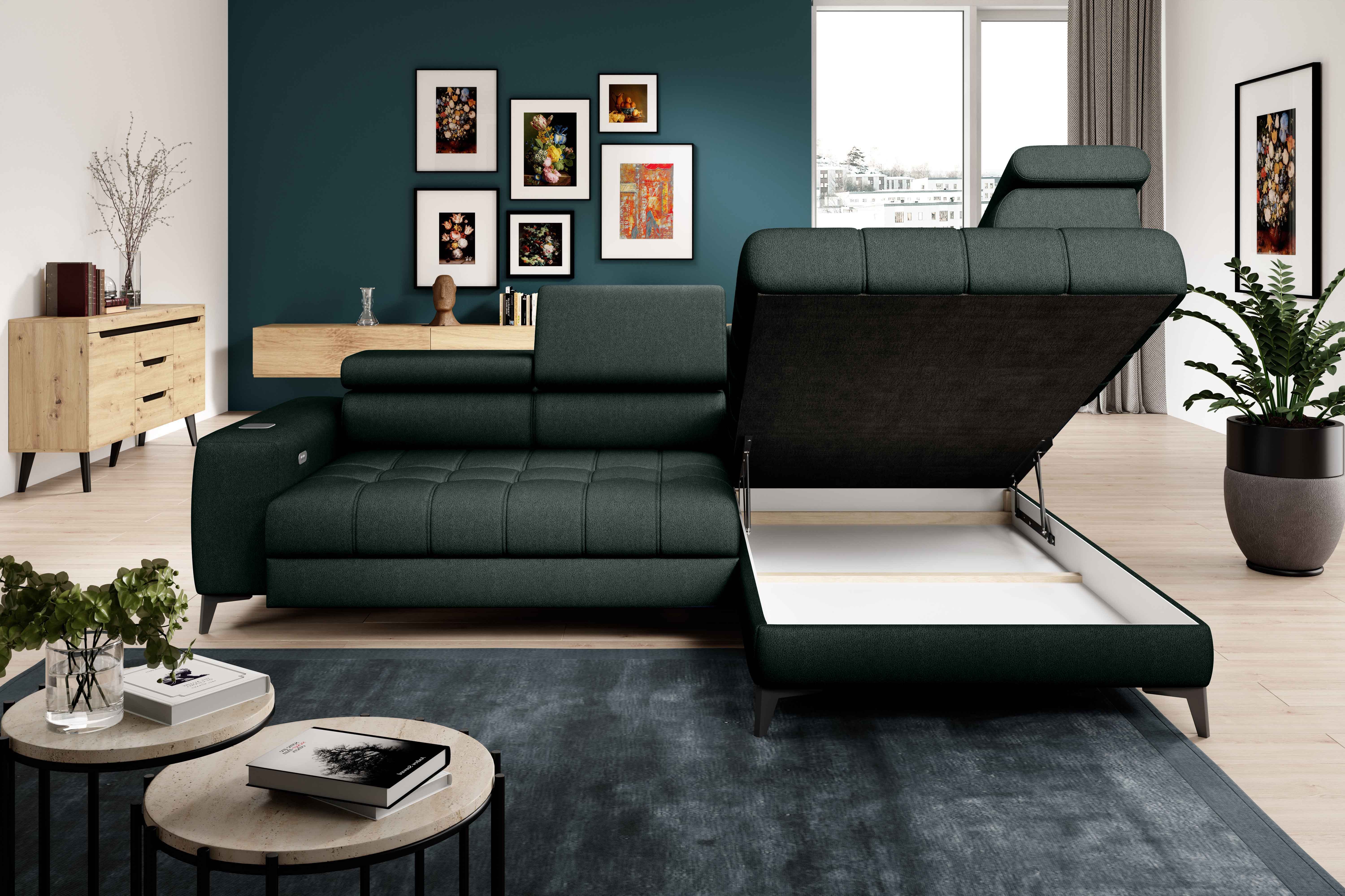 Nowoczesny narożnik BAGGIO z funkcją spania i pojemnikiem na pościel