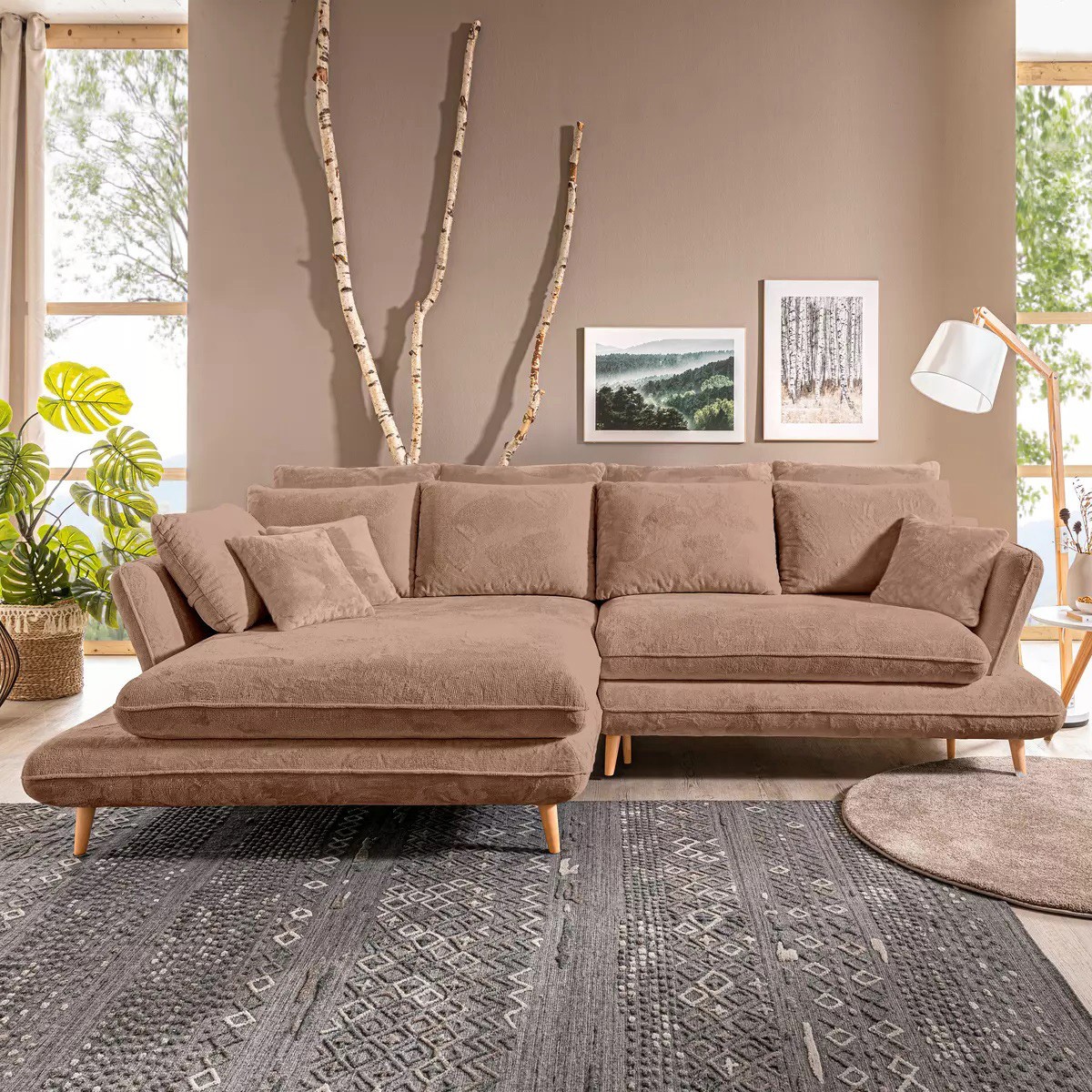 Narożnik MONTE Lewostronny z funkcją spania, pojemnikiem i poduszkami, Sorriso 05 Brązowy WERSAL