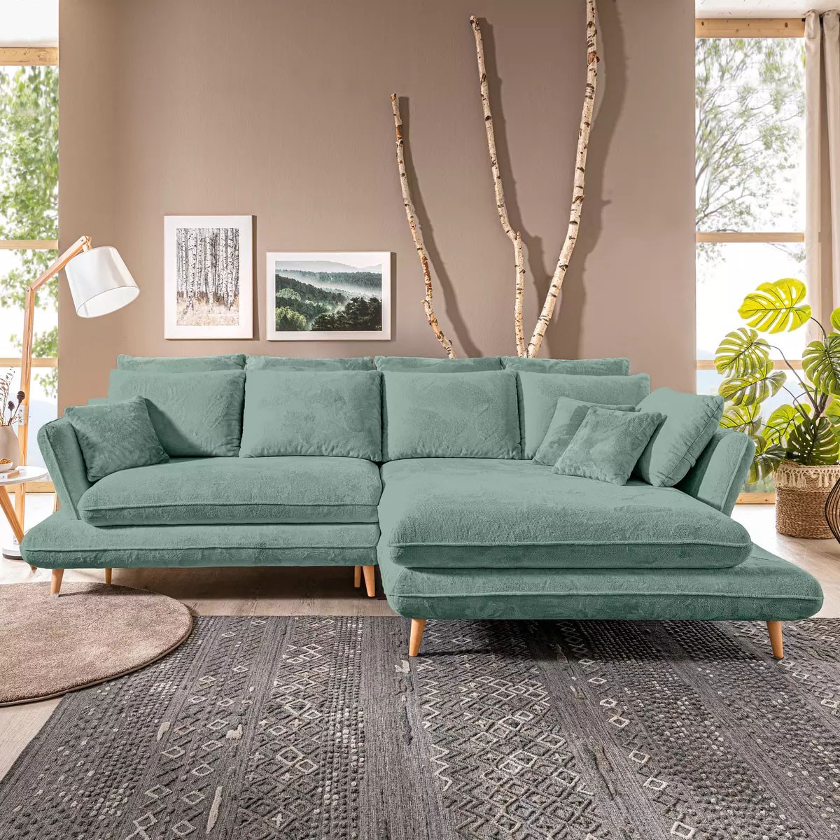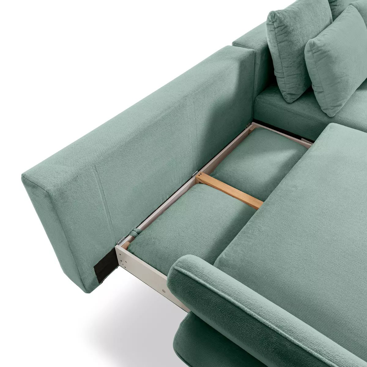 Narożnik MONTE Prawostronny z funkcją spania, pojemnikiem i poduszkami, Sorriso 08 Miętowy WERSAL