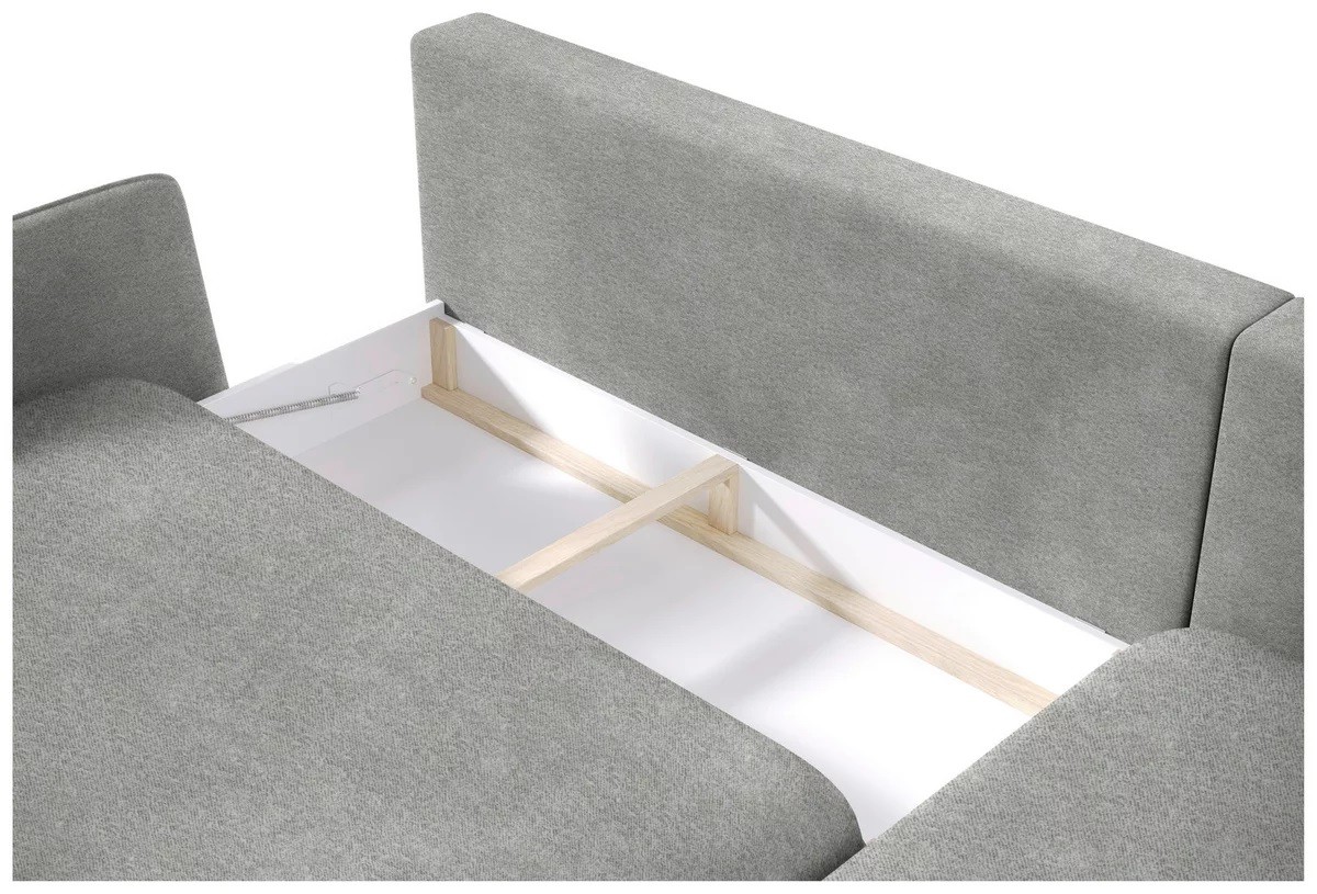 Dodatkowy pojemnik na pościel (13,5x60x127 cm) zapewnia praktyczne miejsce do przechowywania, pomagając utrzymać porządek w salonie.
