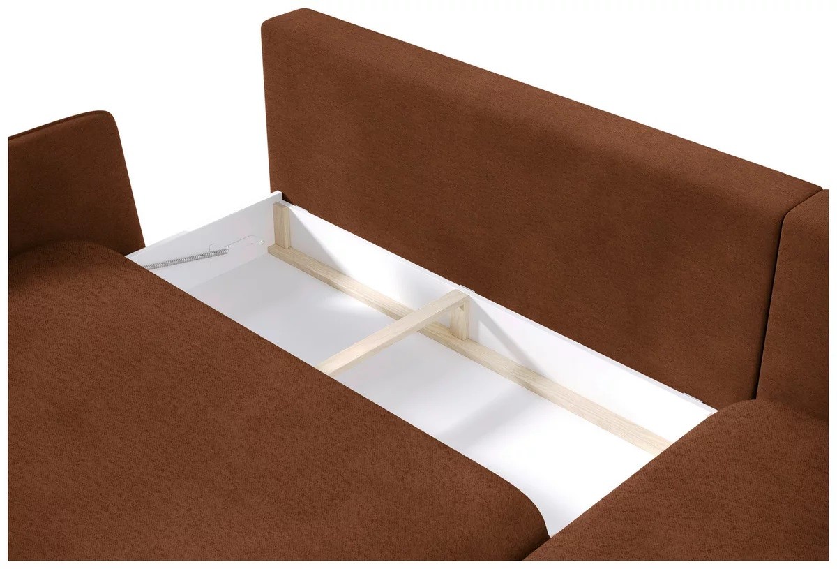 Dodatkowy pojemnik na pościel (13,5x60x127 cm) zapewnia praktyczne miejsce do przechowywania, pomagając utrzymać porządek w salonie.