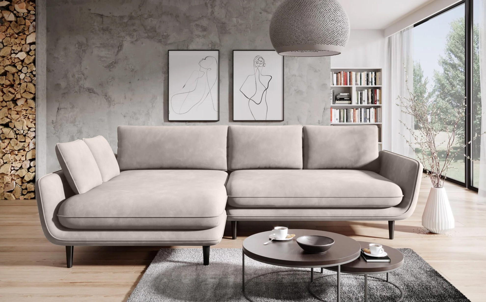Narożnik Solano to idealny wybór dla osób ceniących połączenie eleganckiego designu z codziennym komfortem. Subtelne linie oraz drewniane toczone nóżki dodają mu lekkości i stylu, dzięki czemu doskonale wkomponuje się w zarówno nowoczesne, jak i klasyczne aranżacje wnętrz.