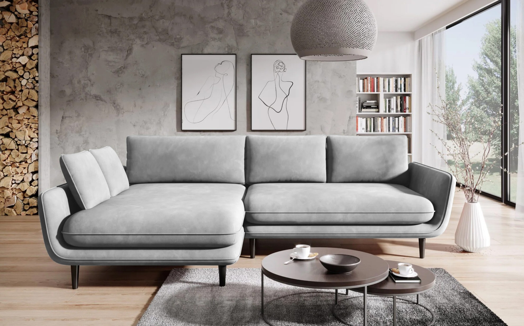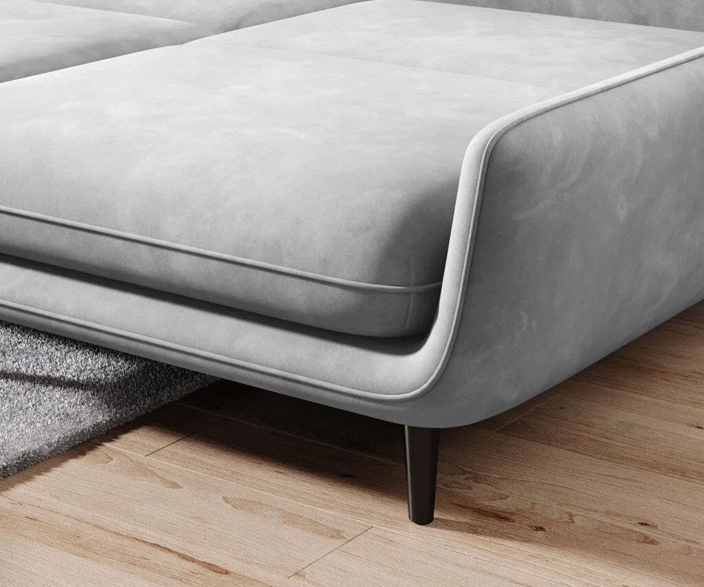 Narożnik Solano to idealny wybór dla osób ceniących połączenie eleganckiego designu z codziennym komfortem. Subtelne linie oraz drewniane toczone nóżki dodają mu lekkości i stylu, dzięki czemu doskonale wkomponuje się w zarówno nowoczesne, jak i klasyczne aranżacje wnętrz.