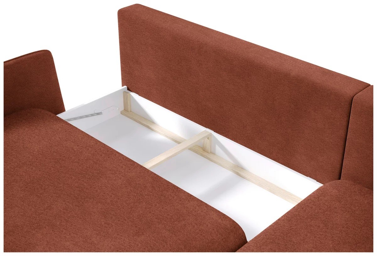 Dodatkowy pojemnik na pościel (13,5x60x127 cm) zapewnia praktyczne miejsce do przechowywania, pomagając utrzymać porządek w salonie.