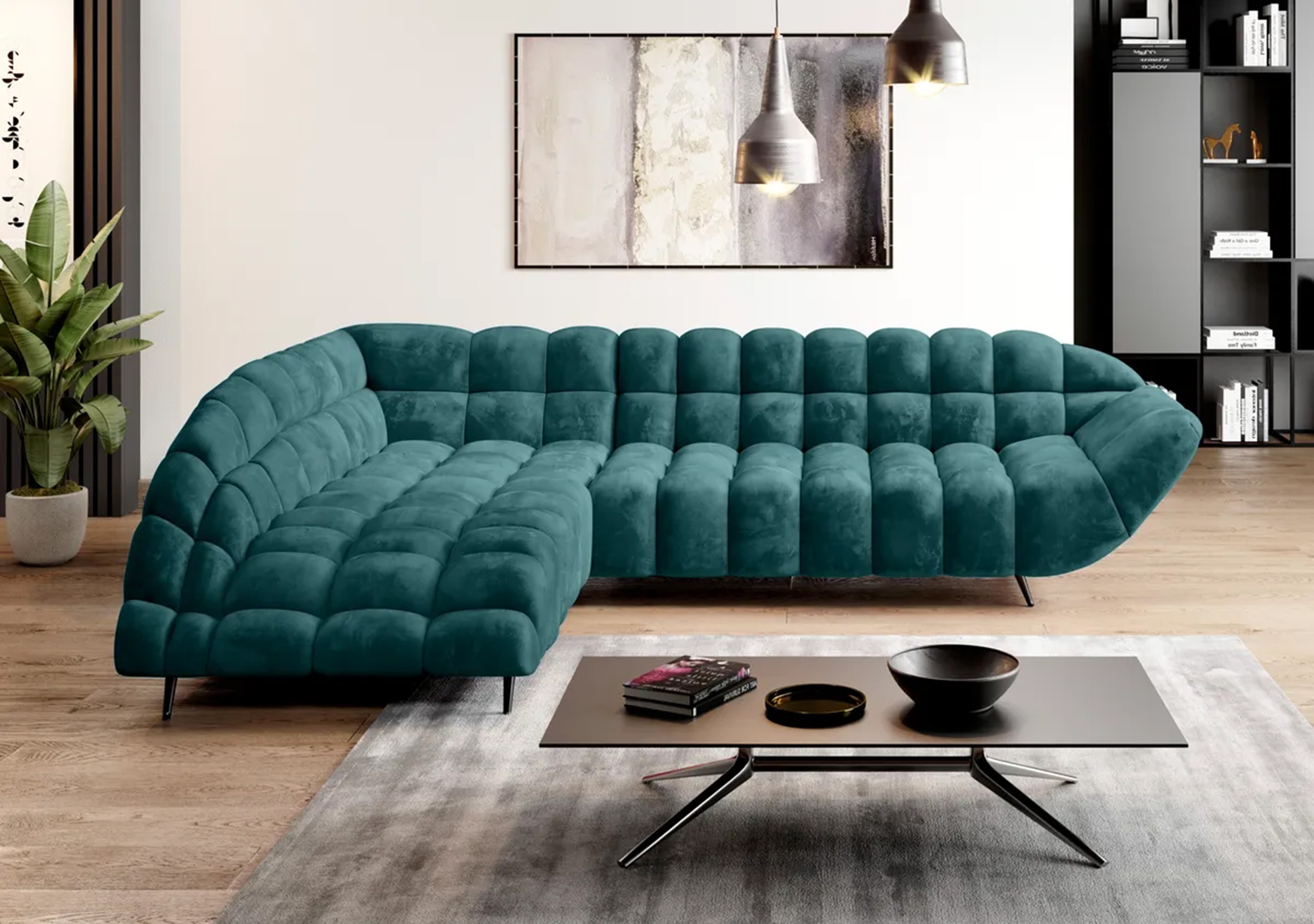 Narożnik GAPPA to mebel wolnostojący, z tyłem wykończonym tkaniną, dzięki czemu można go ustawić w dowolnym miejscu salonu – także na środku pomieszczenia.