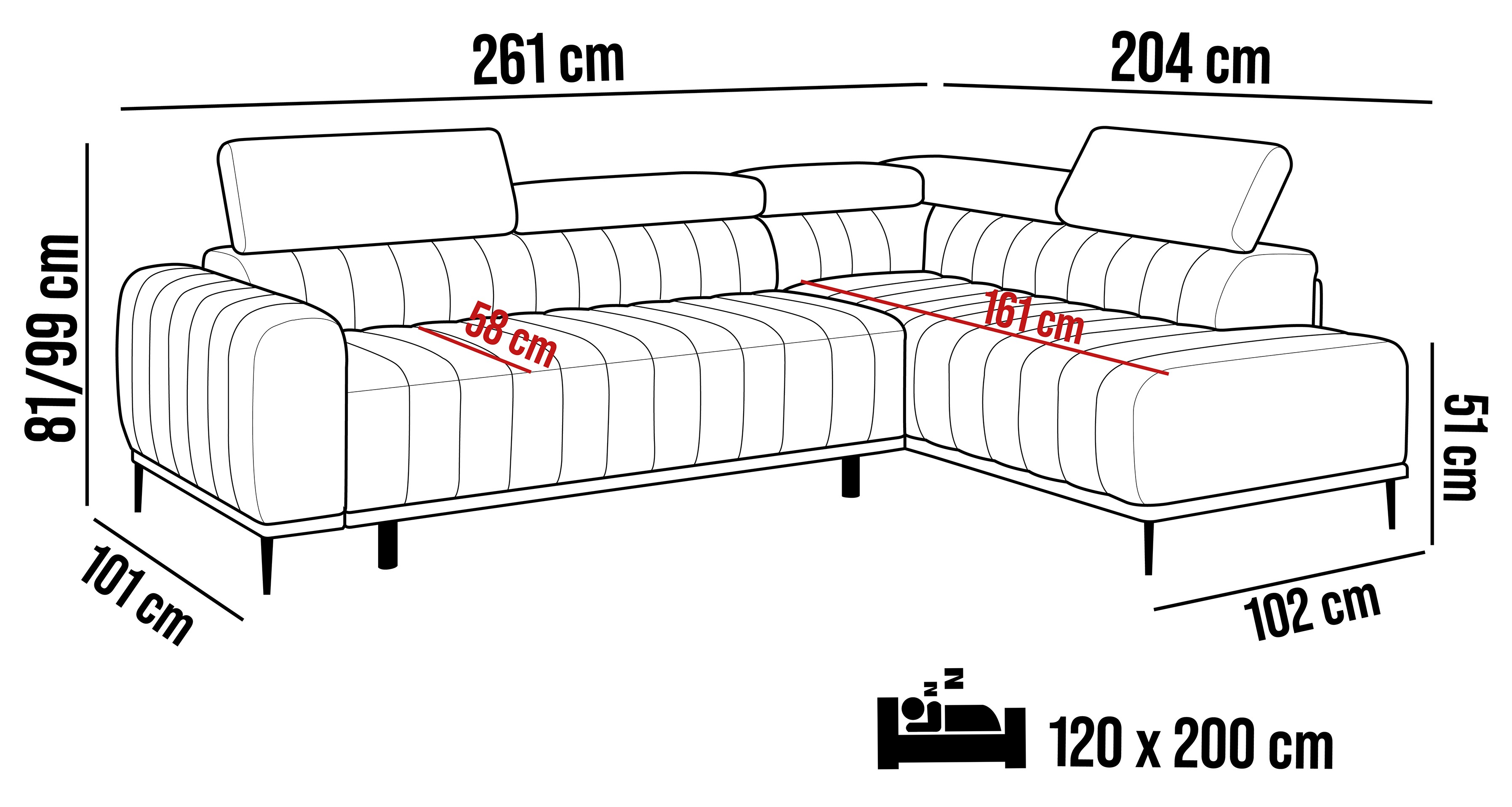 261x204x99 cm