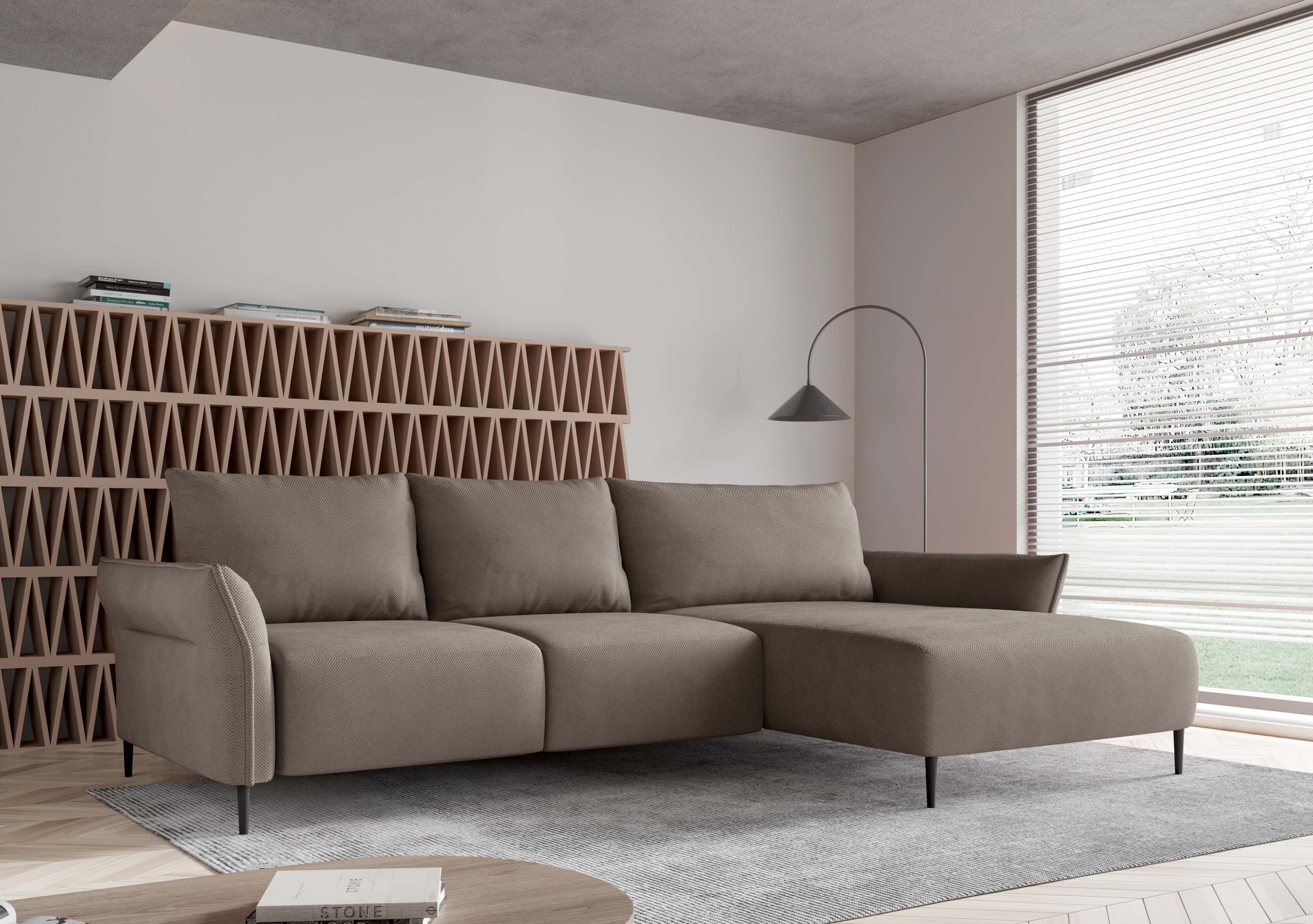 Nowoczesny styl i możliwość wyboru strony narożnika pozwalają dopasować model LUIS do niemal każdej aranżacji.