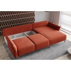 Dzięki zastosowaniu sprężyn falistych i pianki wysokoelastycznej, narożnik LUIS zapewnia wygodę zarówno podczas siedzenia, jak i snu. Funkcja spania oraz praktyczny pojemnik na pościel sprawiają, że to mebel idealny do salonu lub pokoju dziennego.